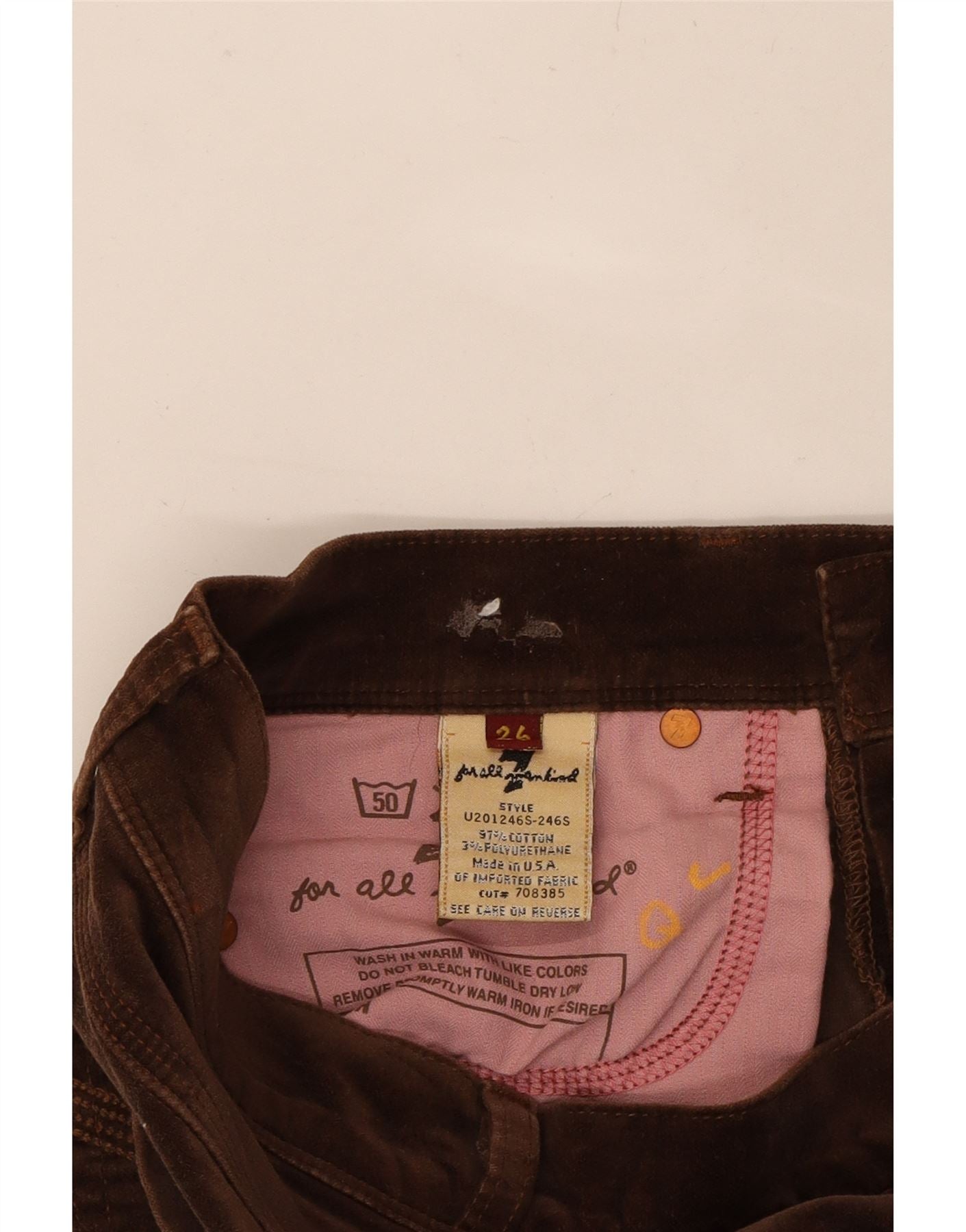 7 FOR ALL MANKIND Womens Straight Casual Trousers W26 L29 Brown Cotton