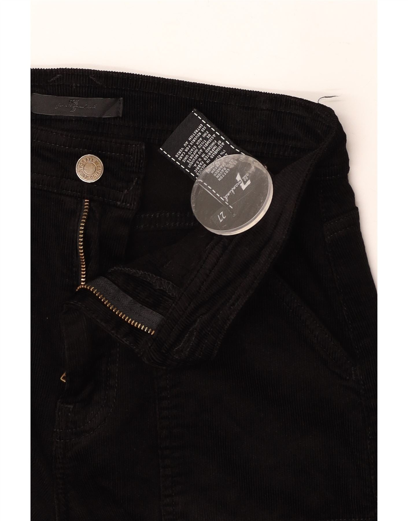 7 FOR ALL MANKIND Womens Straight Corduroy Trousers W27 L23 Black Cotton
