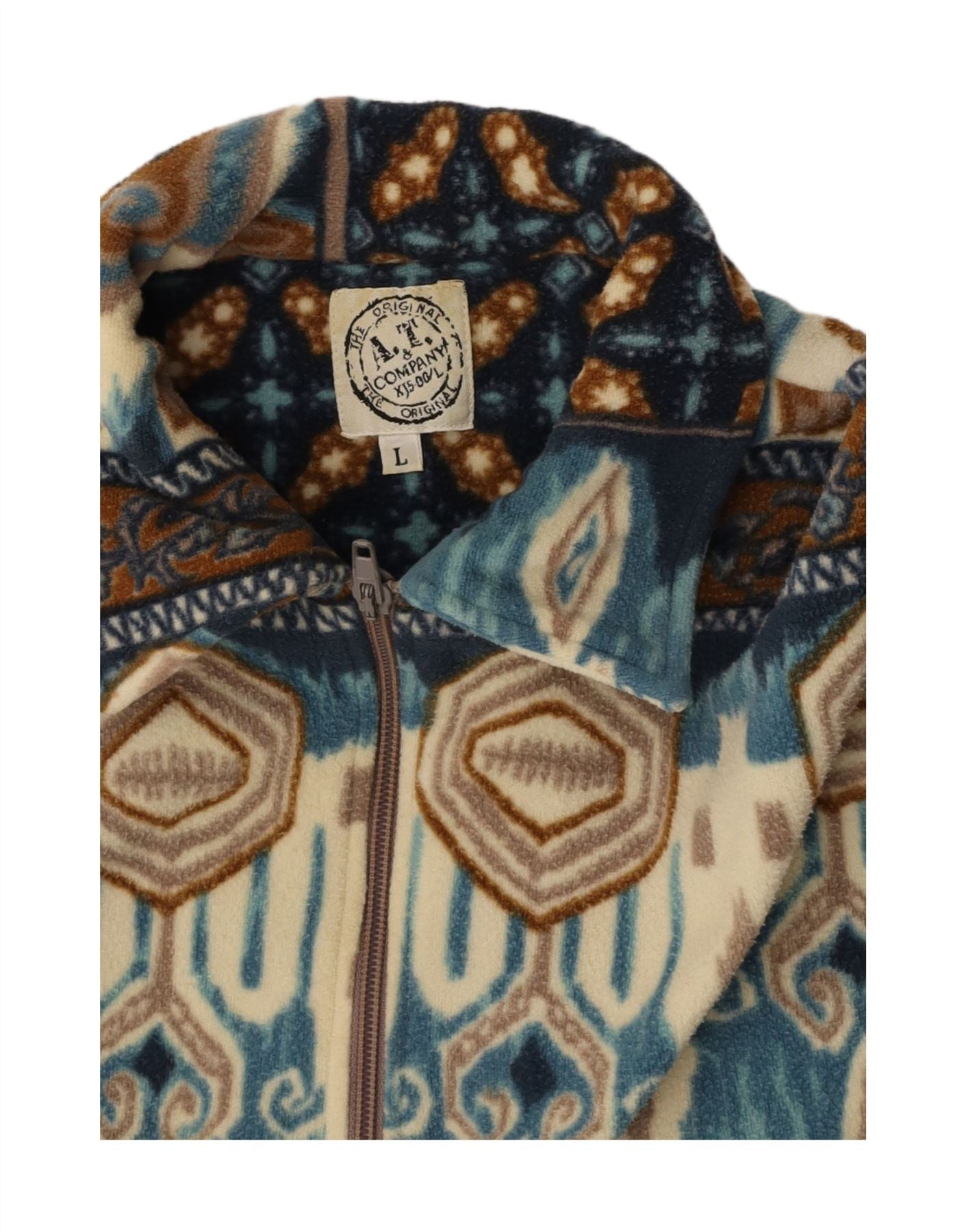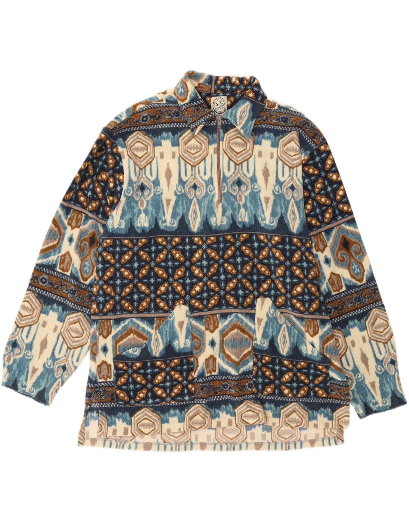 A.M. & COMPANY Mens Zip Neck Fleece Jumper Large Multicoloured Fair Isle