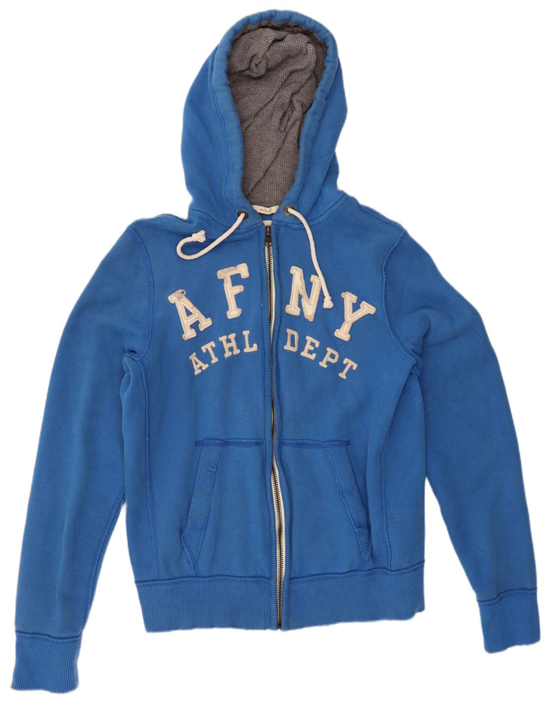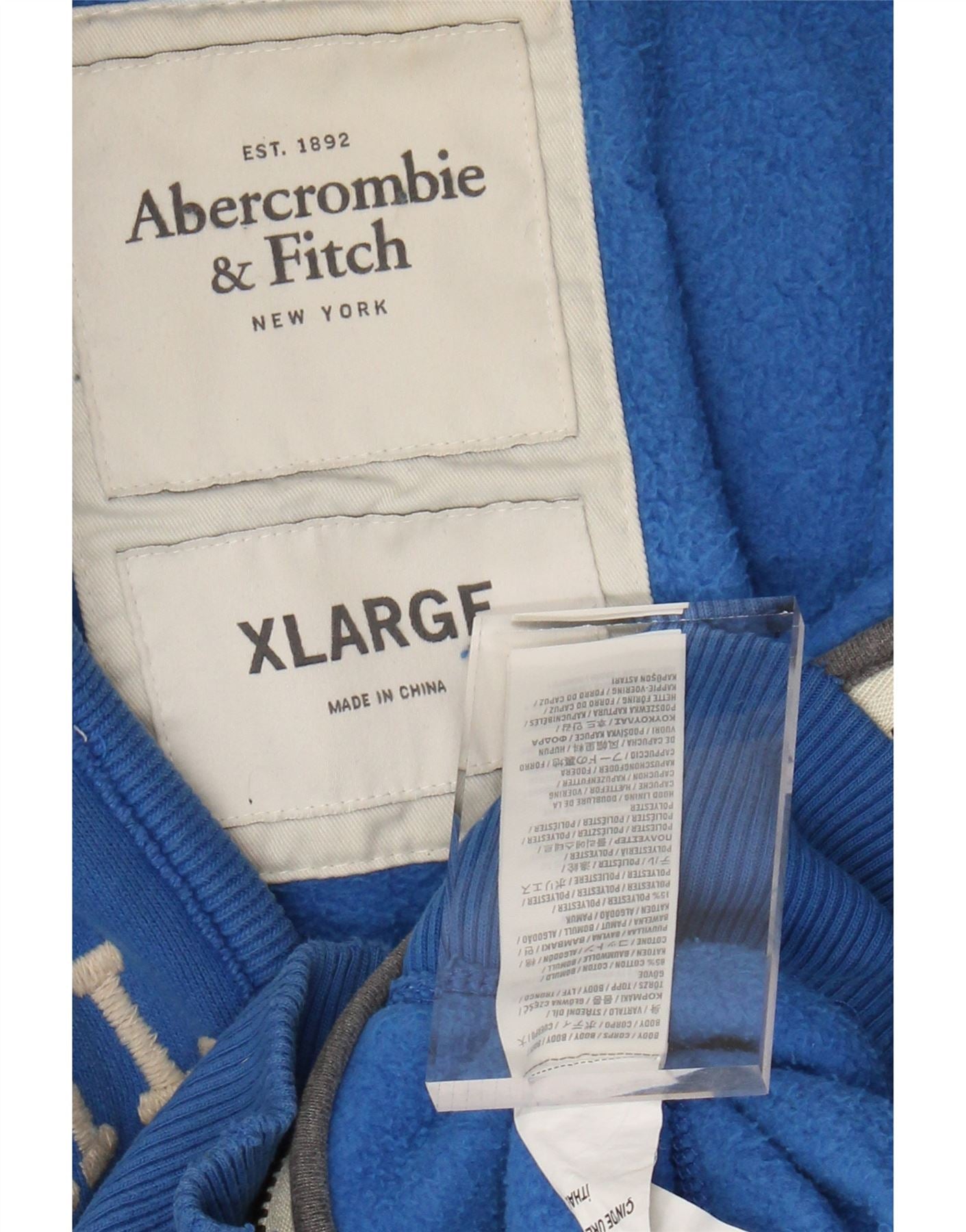 ABERCROMBIE & FITCH Felpa con cappuccio e zip con grafica muscolare da uomo XL in cotone blu