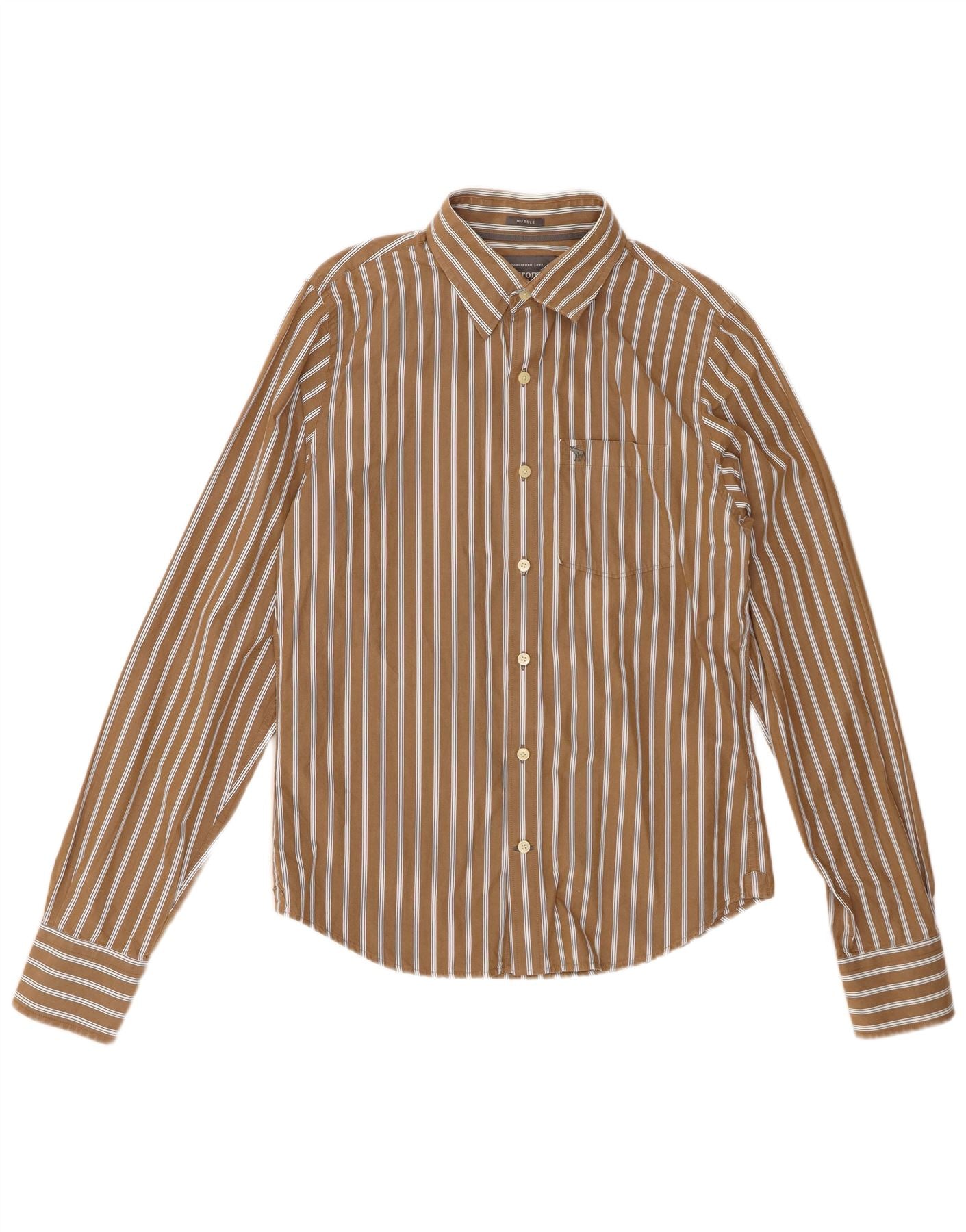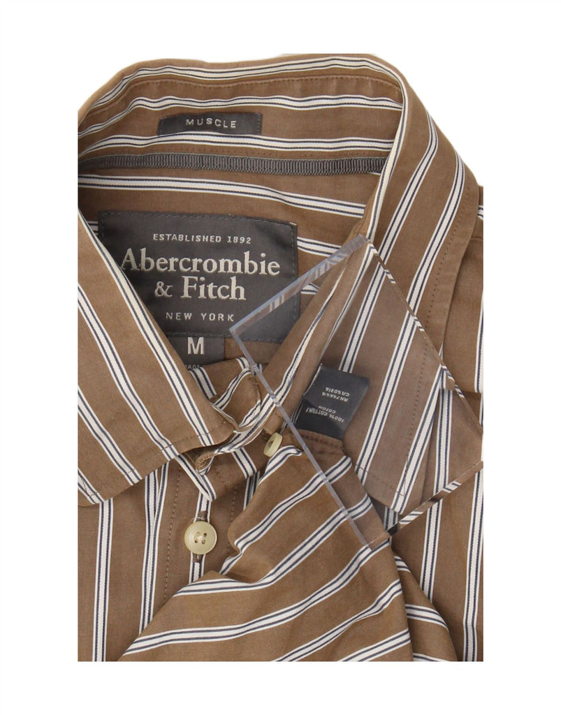 ABERCROMBIE & FITCH Camicia muscolosa da uomo in cotone a righe marrone medio