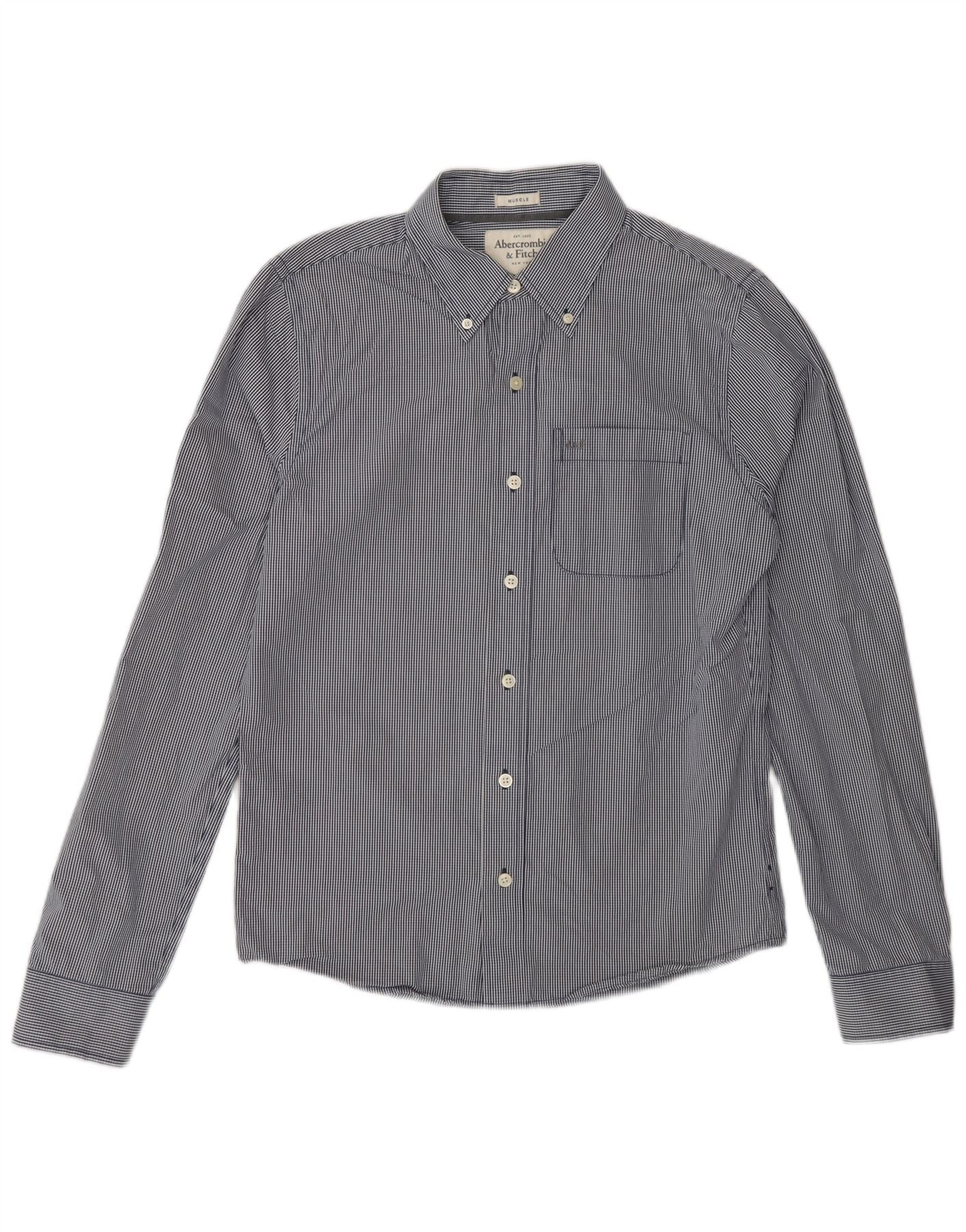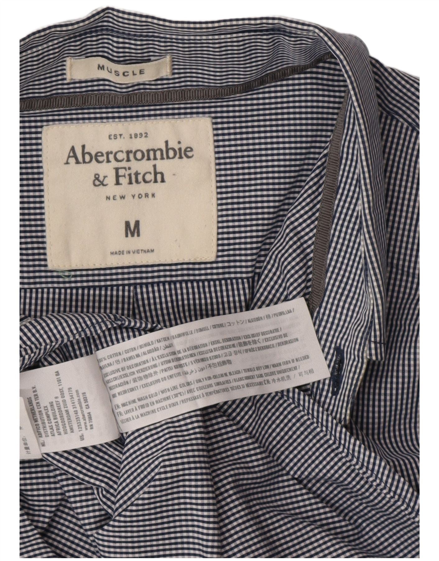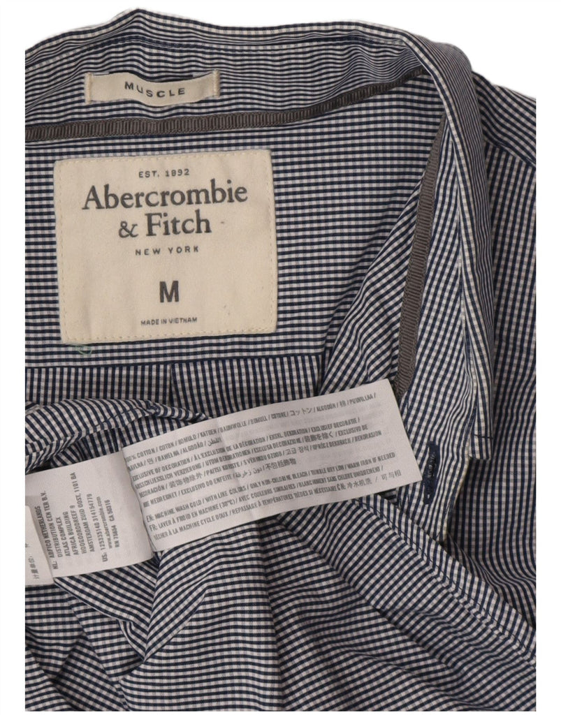 ABERCROMBIE & FITCH Mens Muscle Shirt Medium Navy Blue Gingham Cotton