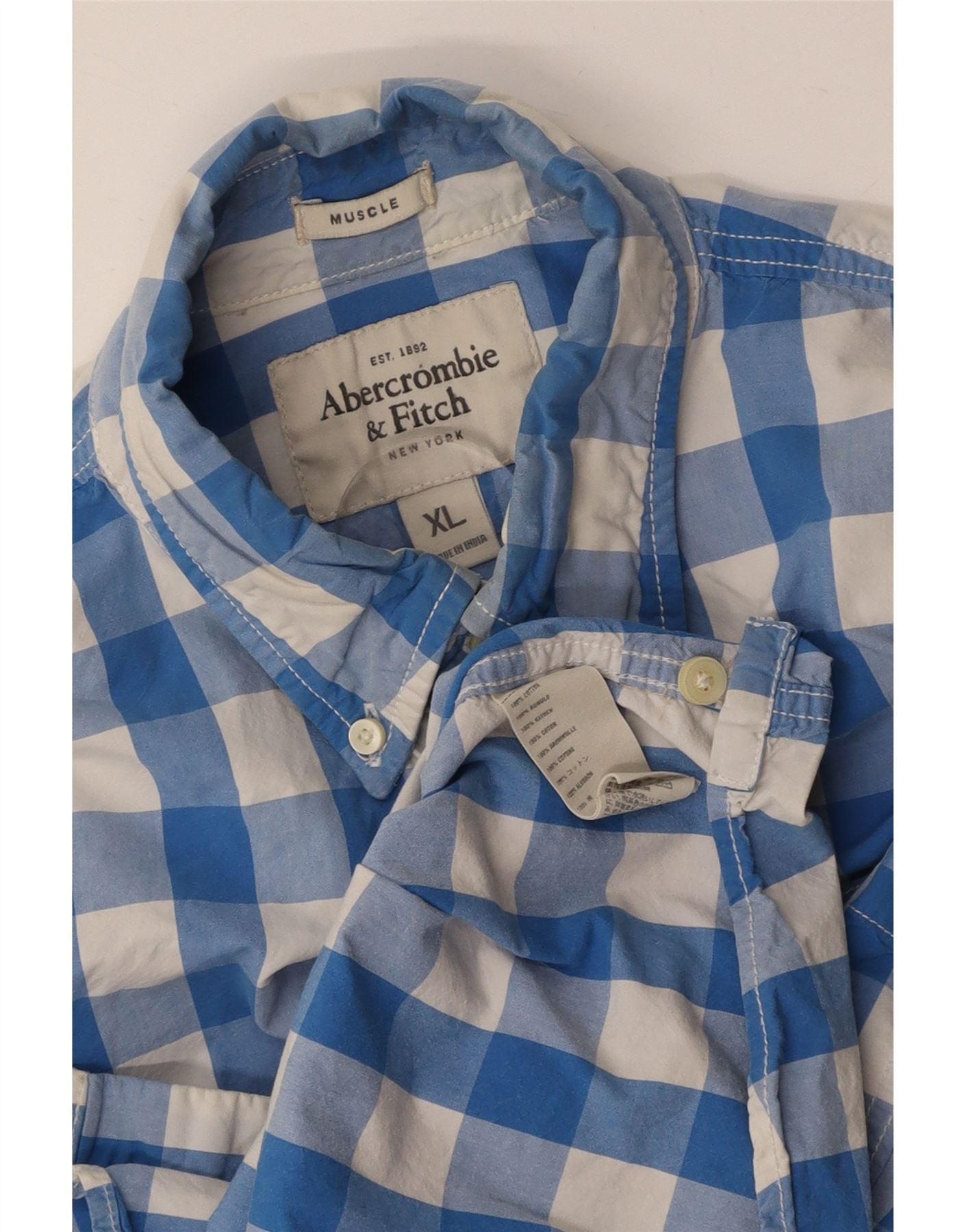 ABERCROMBIE & FITCH Camicia muscolosa da uomo XL in cotone a quadri blu