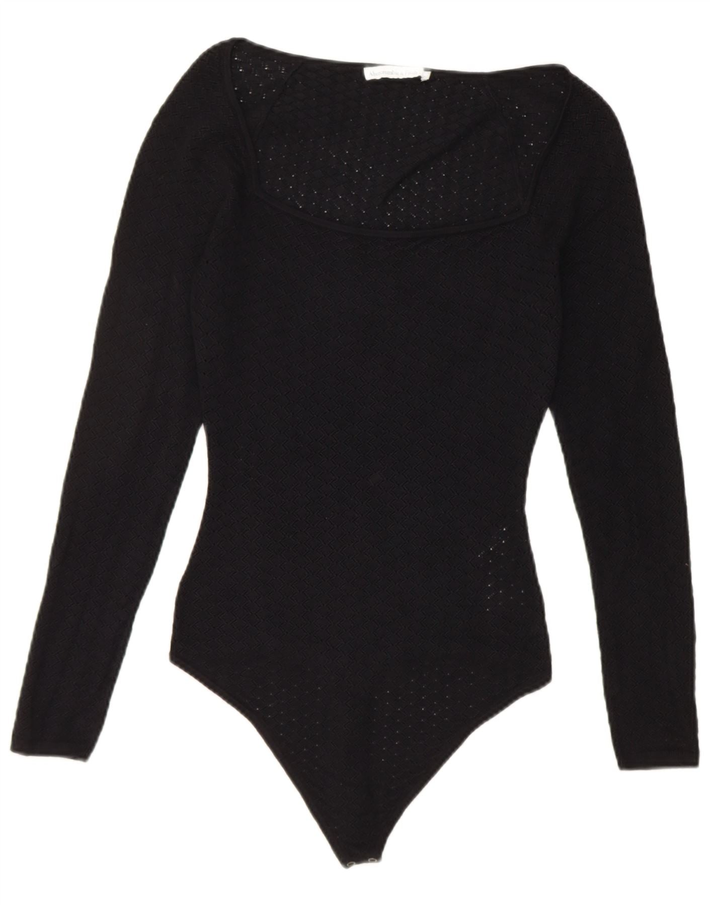ABERCROMBIE & FITCH Womens Long Sleeve Bodysuit UK 8 Small Black Viscose