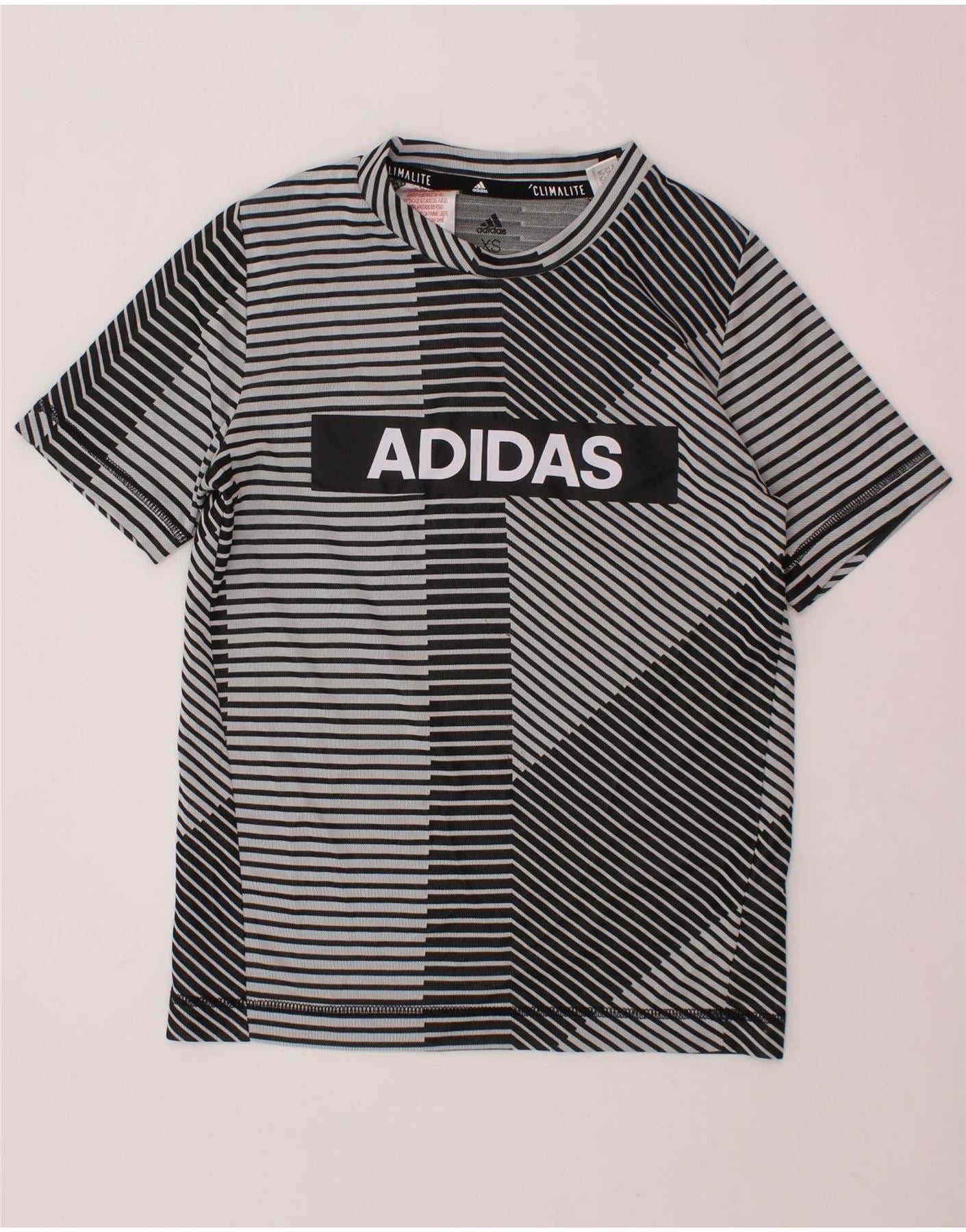 T-shirt grafica ADIDAS da ragazzo Climalite 2-3 anni XS a righe grigie