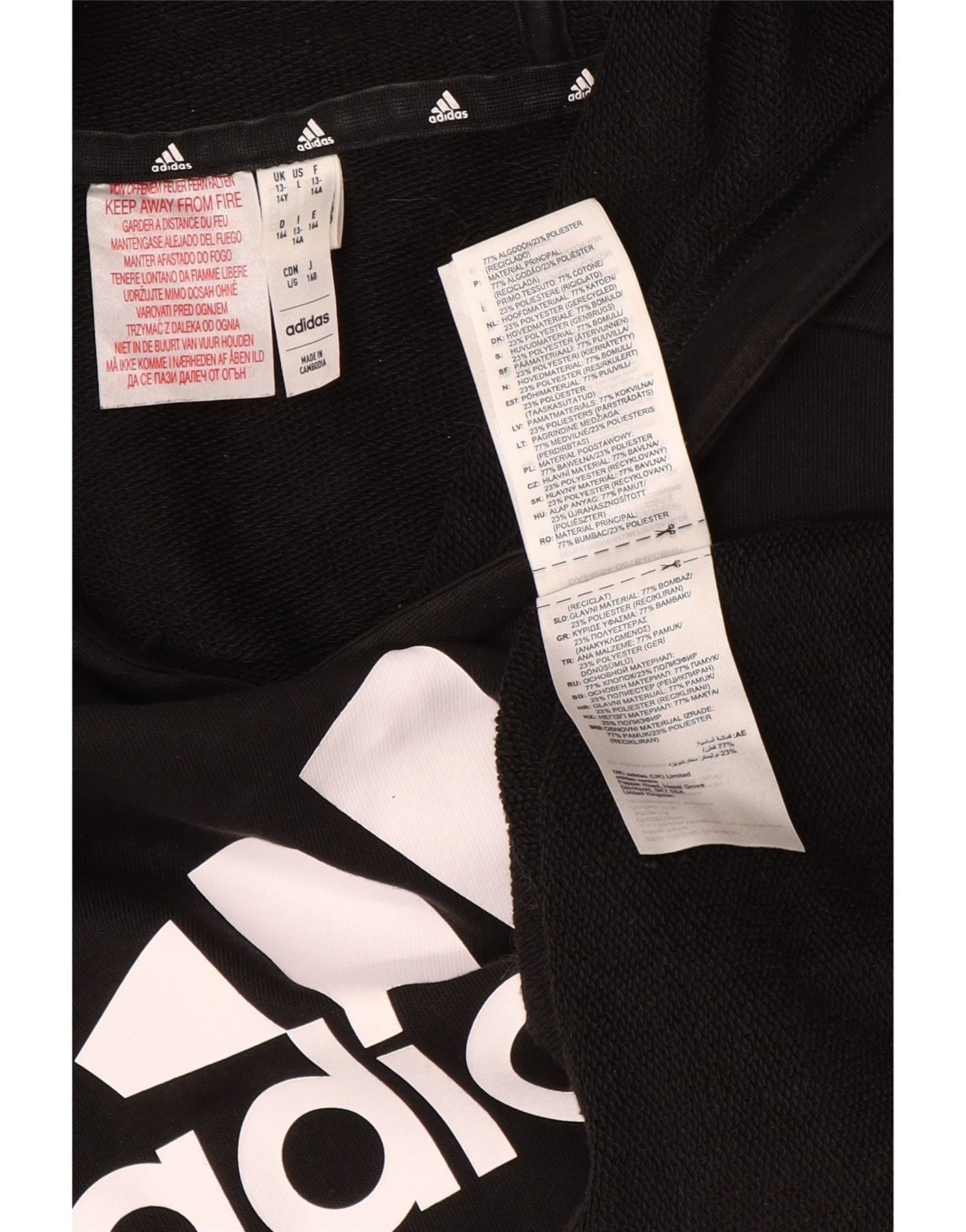 Felpa con cappuccio grafica ADIDAS per ragazzi 13-14 anni in cotone nero