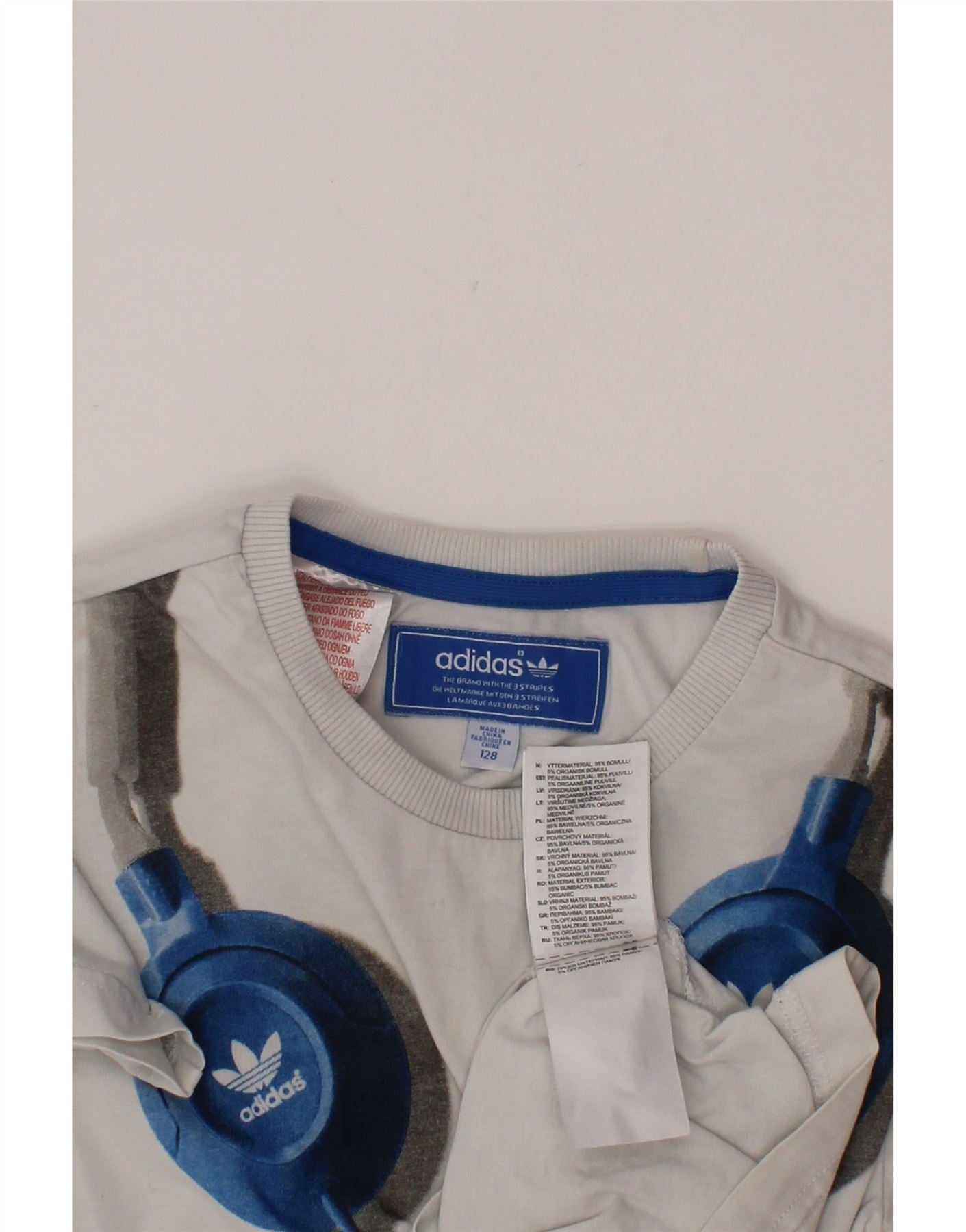 T-shirt grafica ADIDAS per ragazzi 7-8 anni in cotone bianco