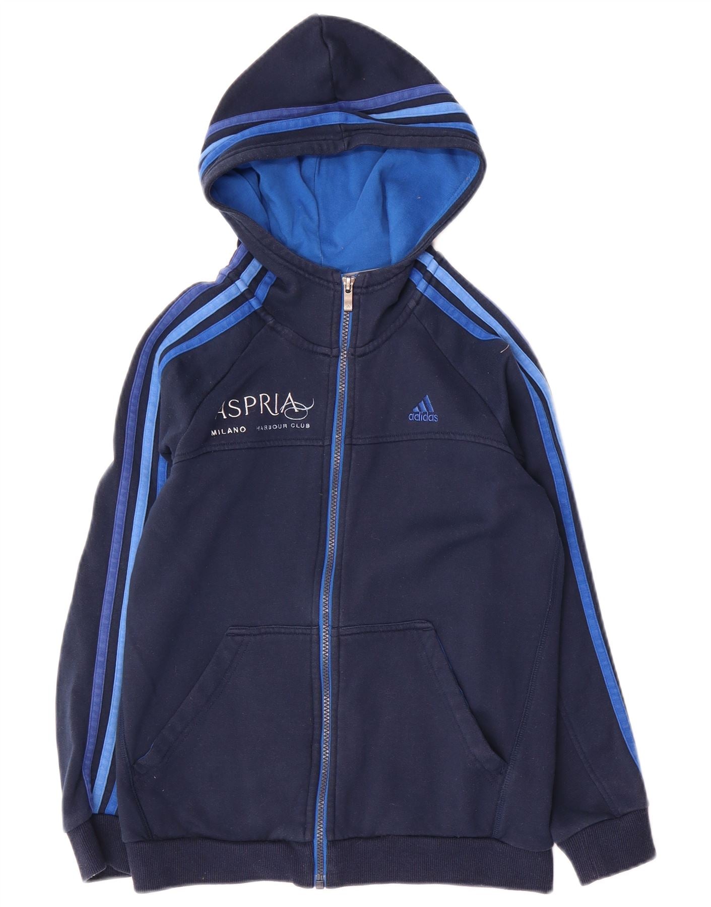 Maglione con cappuccio e zip grafica ADIDAS per ragazzi 11-12 anni in cotone blu navy