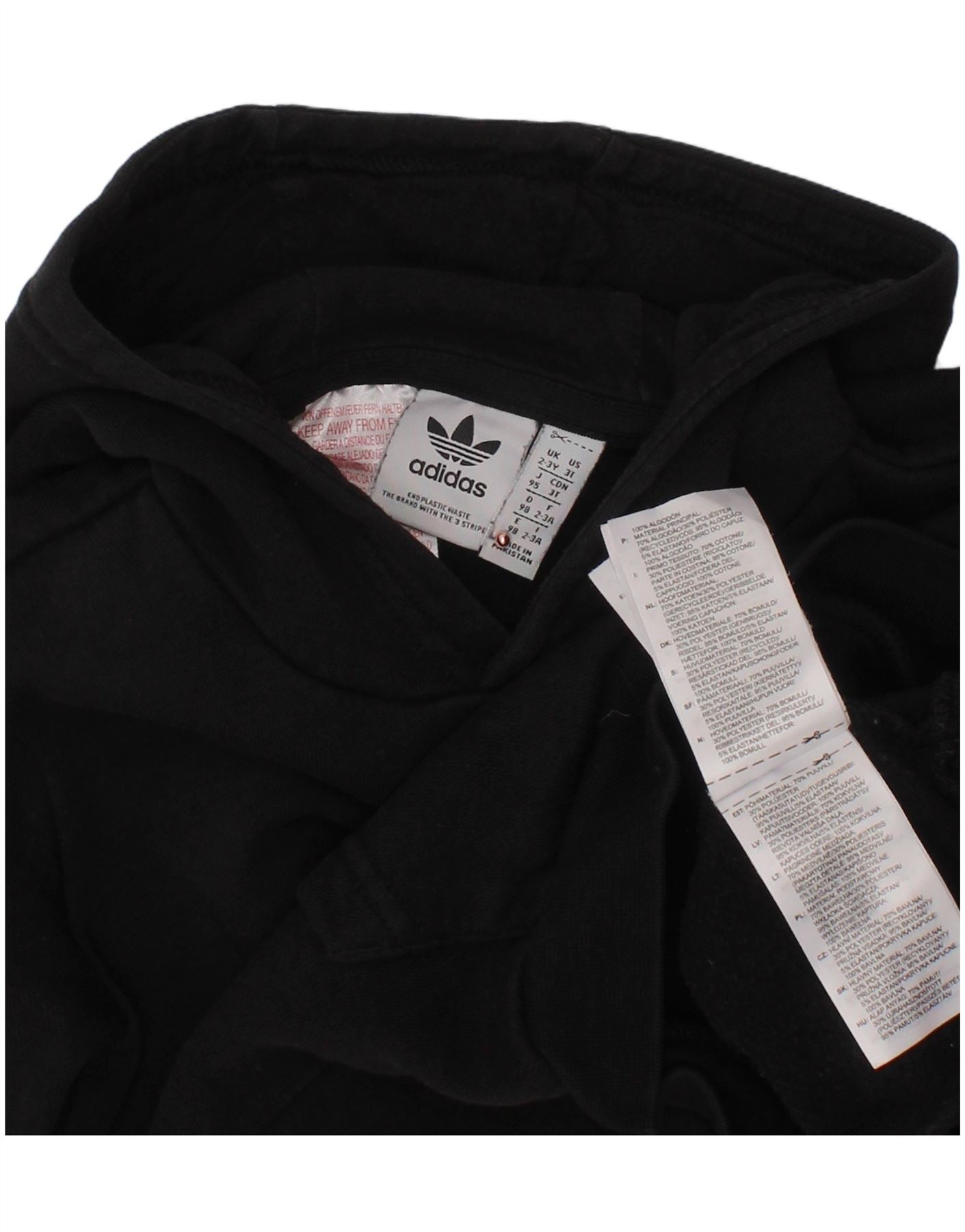Maglione con cappuccio ADIDAS per ragazzi 2-3 anni in cotone nero