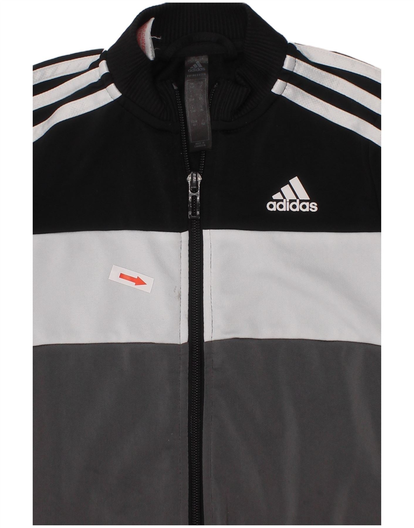 - Descrizione dell'IA: Questa giacca della tuta da ragazzo Adidas è realizzata in jersey di poliestere liscio. Presenta un sorprendente design a blocchi di colore multicolore in nero, bianco e grigio. Lo scollo con colletto e la chiusura full zip offrono un look atletico classico. Finitura maniche lunghe con comodi polsini a coste. Una vestibilità regolare garantisce facilità di movimento per un abbigliamento attivo. L'iconico logo Adidas aggiunge un dettaglio esclusivo del marchio.