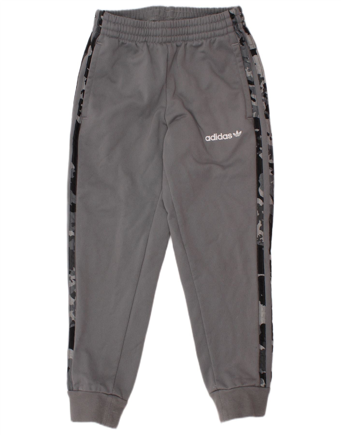 ADIDAS Boys Tracksuit Trousers Joggers 5-6 Years Grey Camouflage Cotton