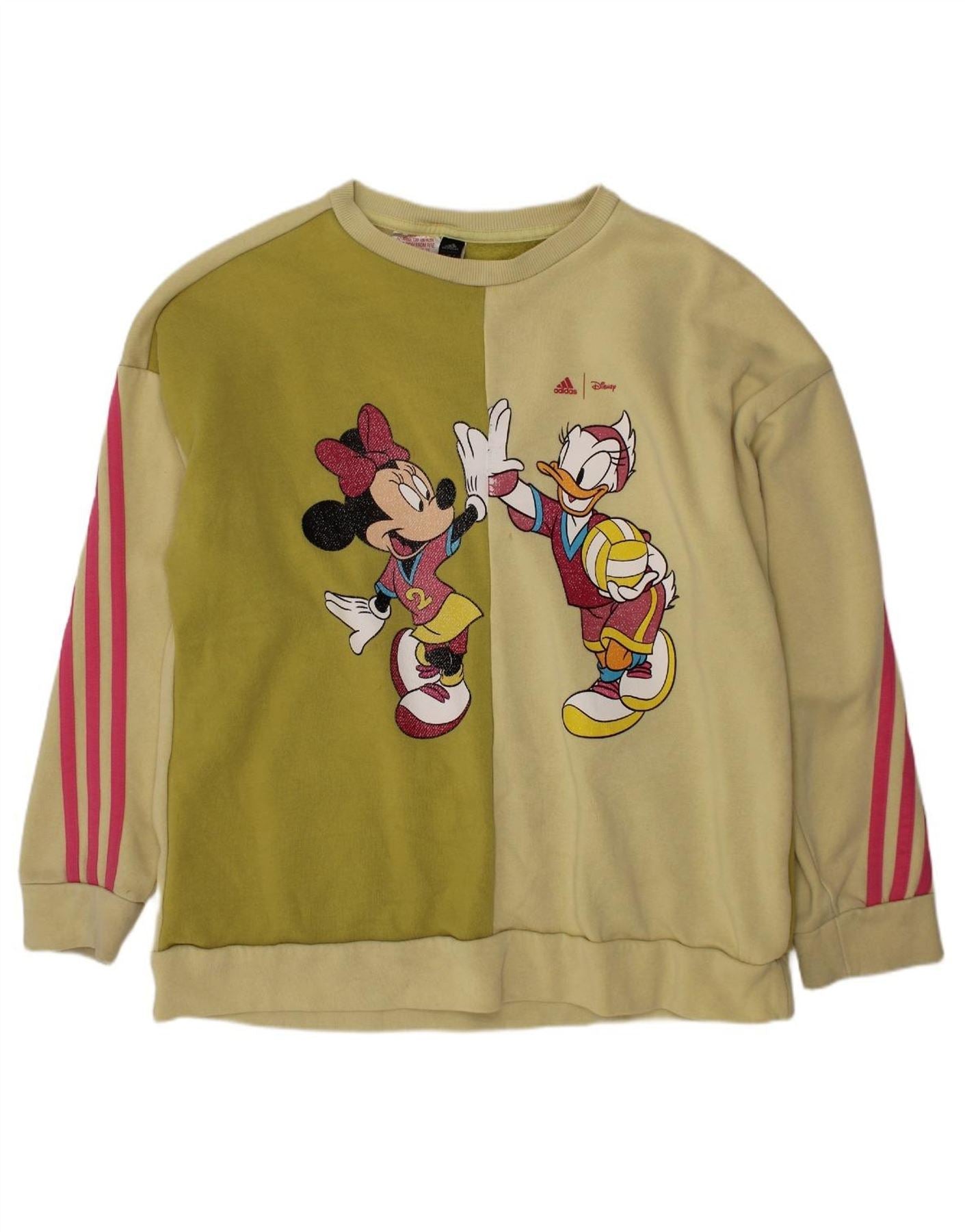 ADIDAS Girls Disney Graphic Sweatshirt Jumper 9-10 Years Green Colourblock