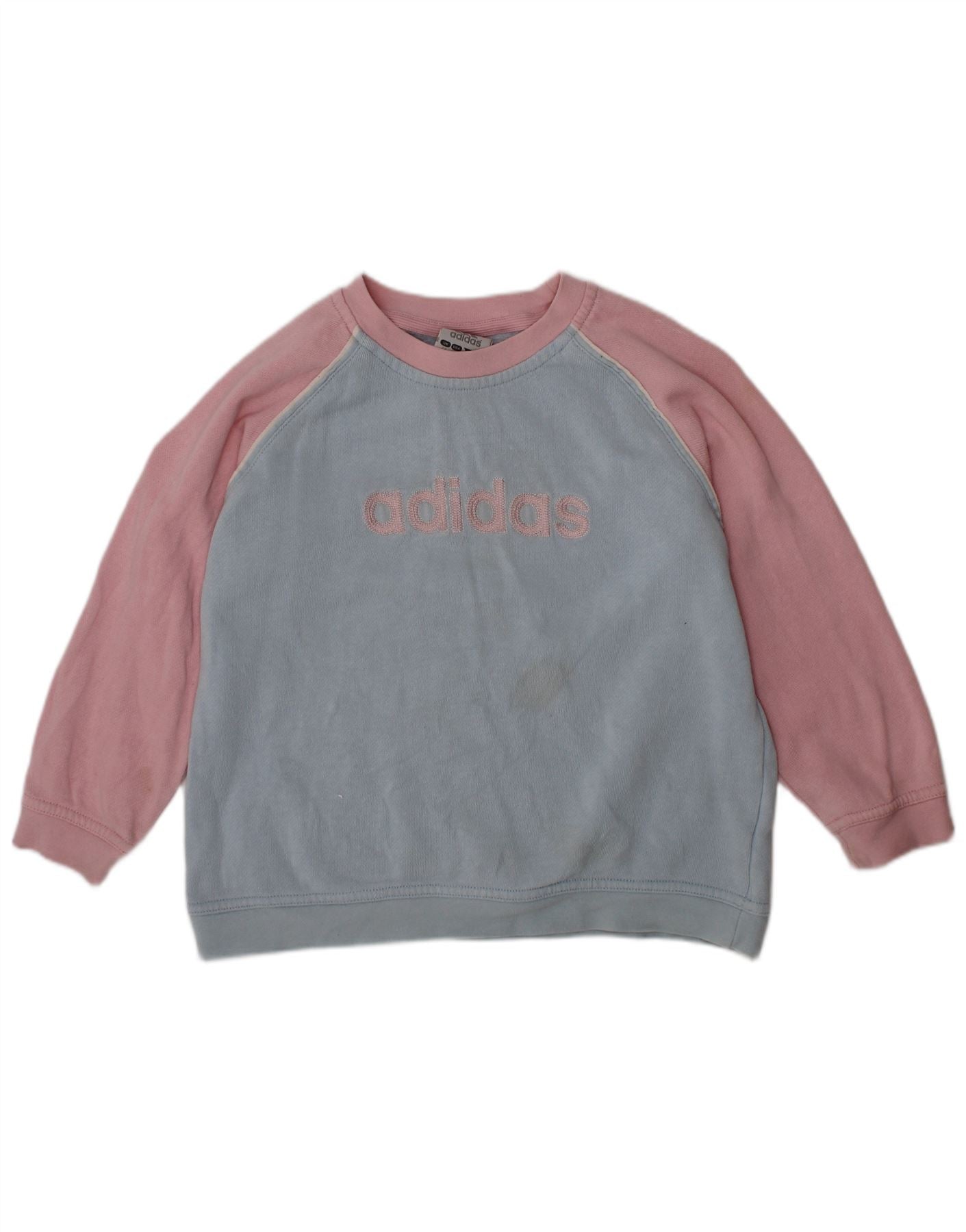 ADIDAS Girls Graphic Sweatshirt Jumper 2-3 Years Blue Colourblock Cotton