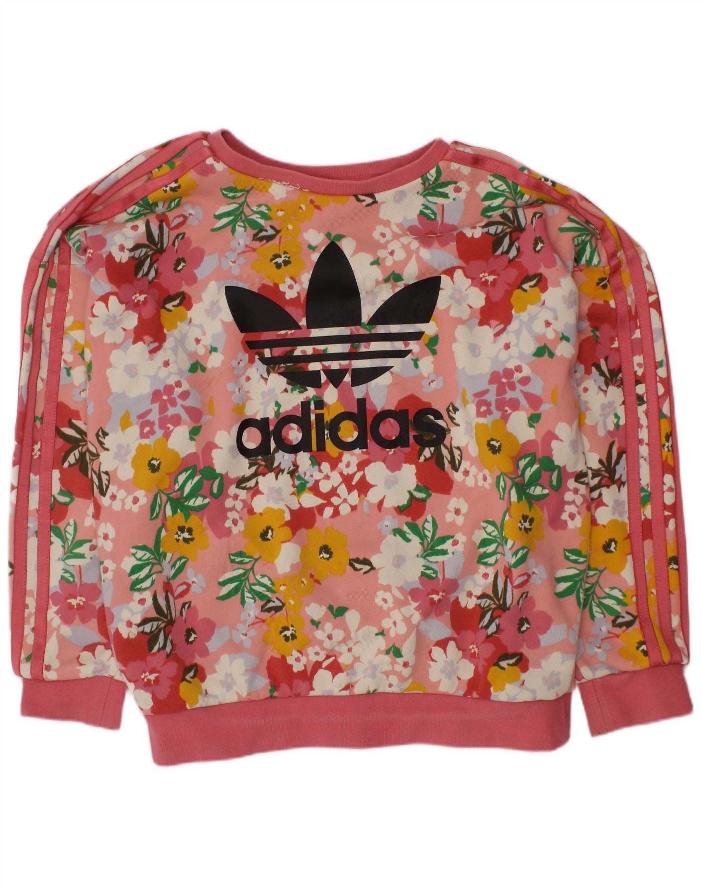 Felpa grafica ADIDAS per ragazze 9-10 anni in cotone floreale rosa
