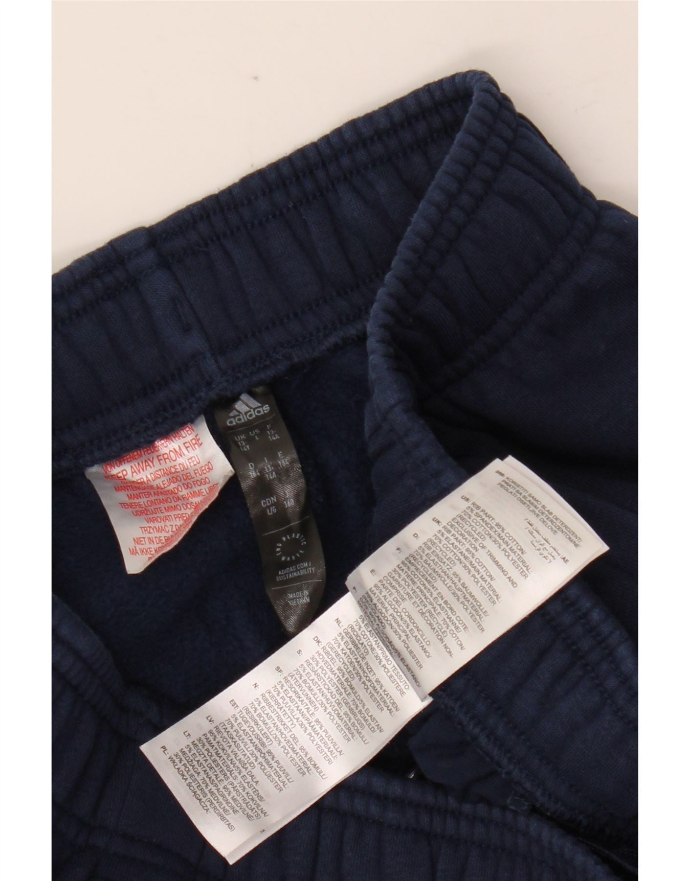 ADIDAS Girls Tracksuit Trousers Joggers 13-14 Years Navy Blue Cotton