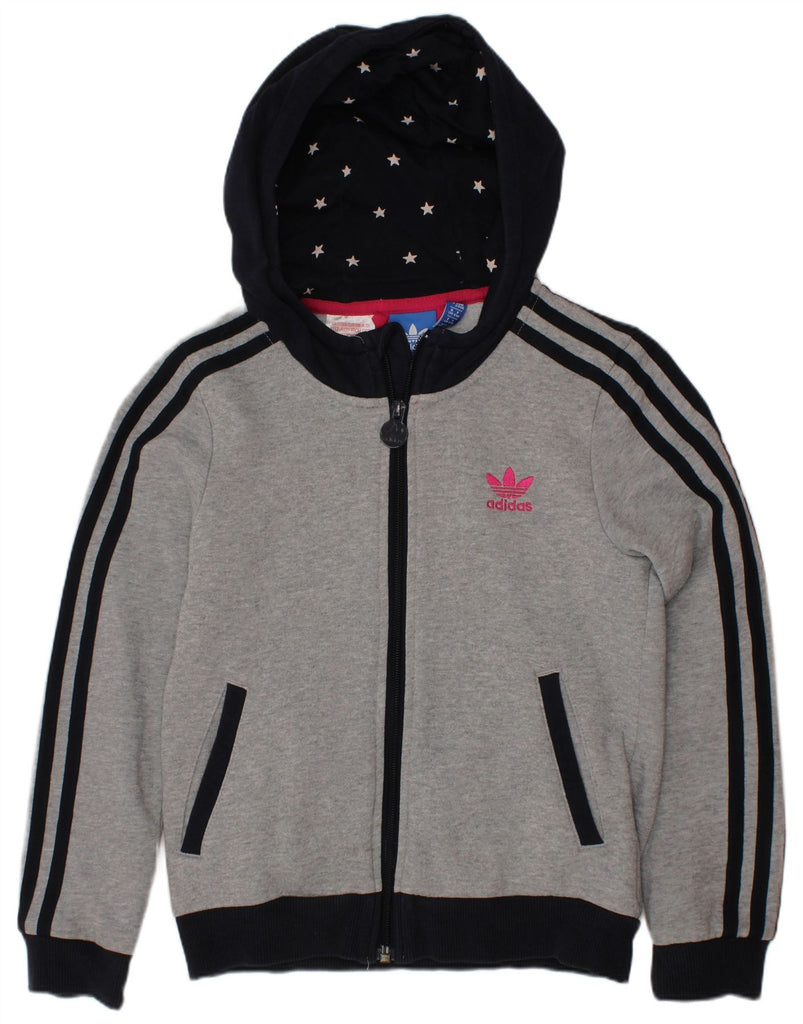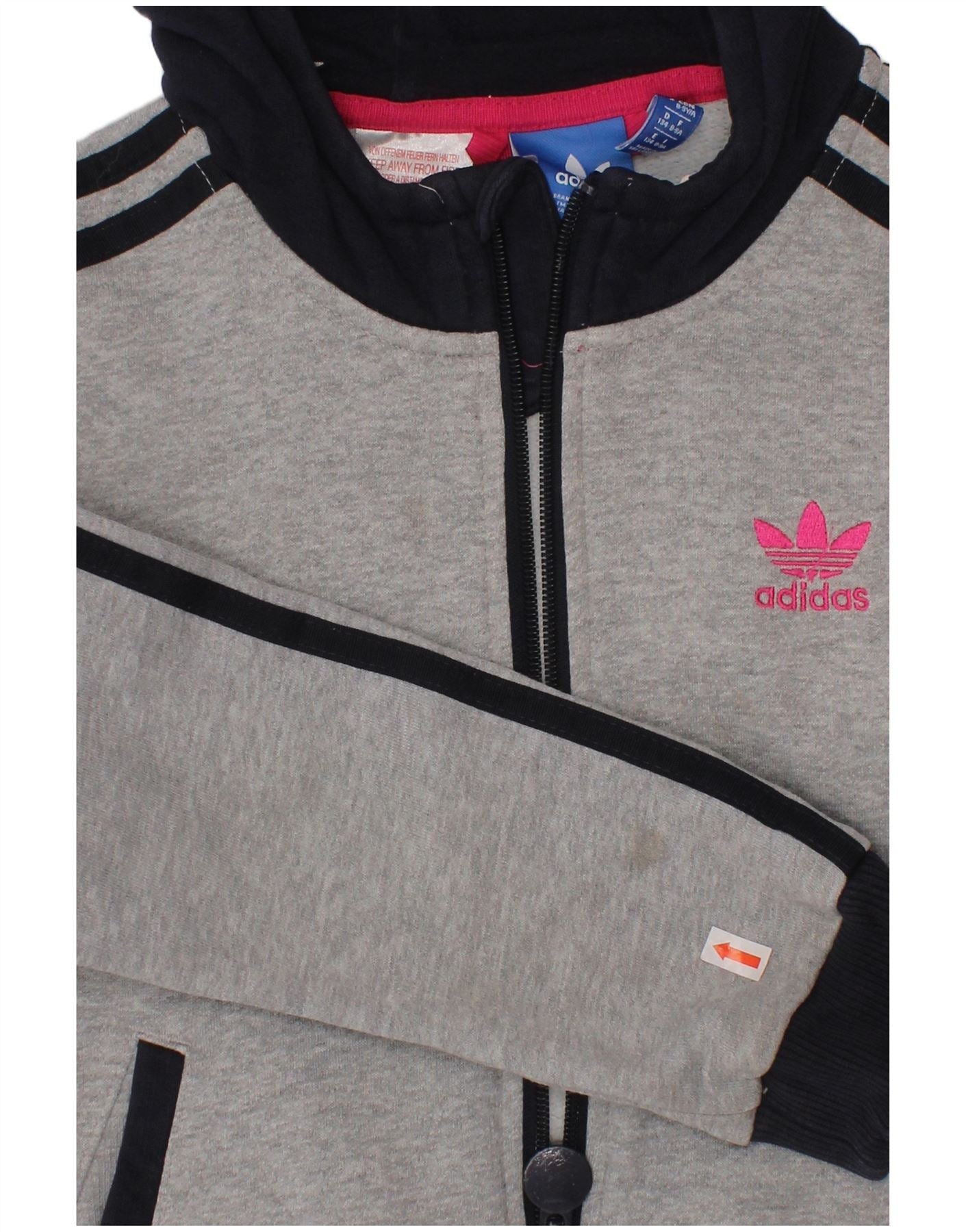Felpa con cappuccio e zip per ragazze ADIDAS 8-9 anni in cotone color block grigio