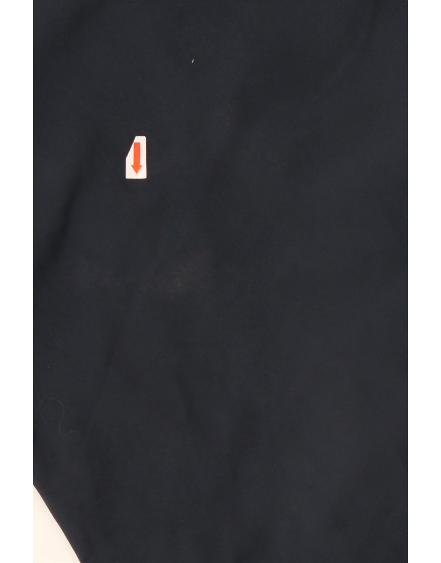- Descrizione dell'IA: Questi pantaloni da tuta da uomo Adidas sono realizzati in tessuto blu navy, che offre una finitura antivento e traspirante. Sono dotati di vita elasticizzata con coulisse per una vestibilità comoda e regolare. Il design include pratiche tasche. Strisce bianche e azzurre scendono lungo i lati, completate da un discreto logo Adidas. I cordoncini sull'orlo consentono uno stile regolabile.