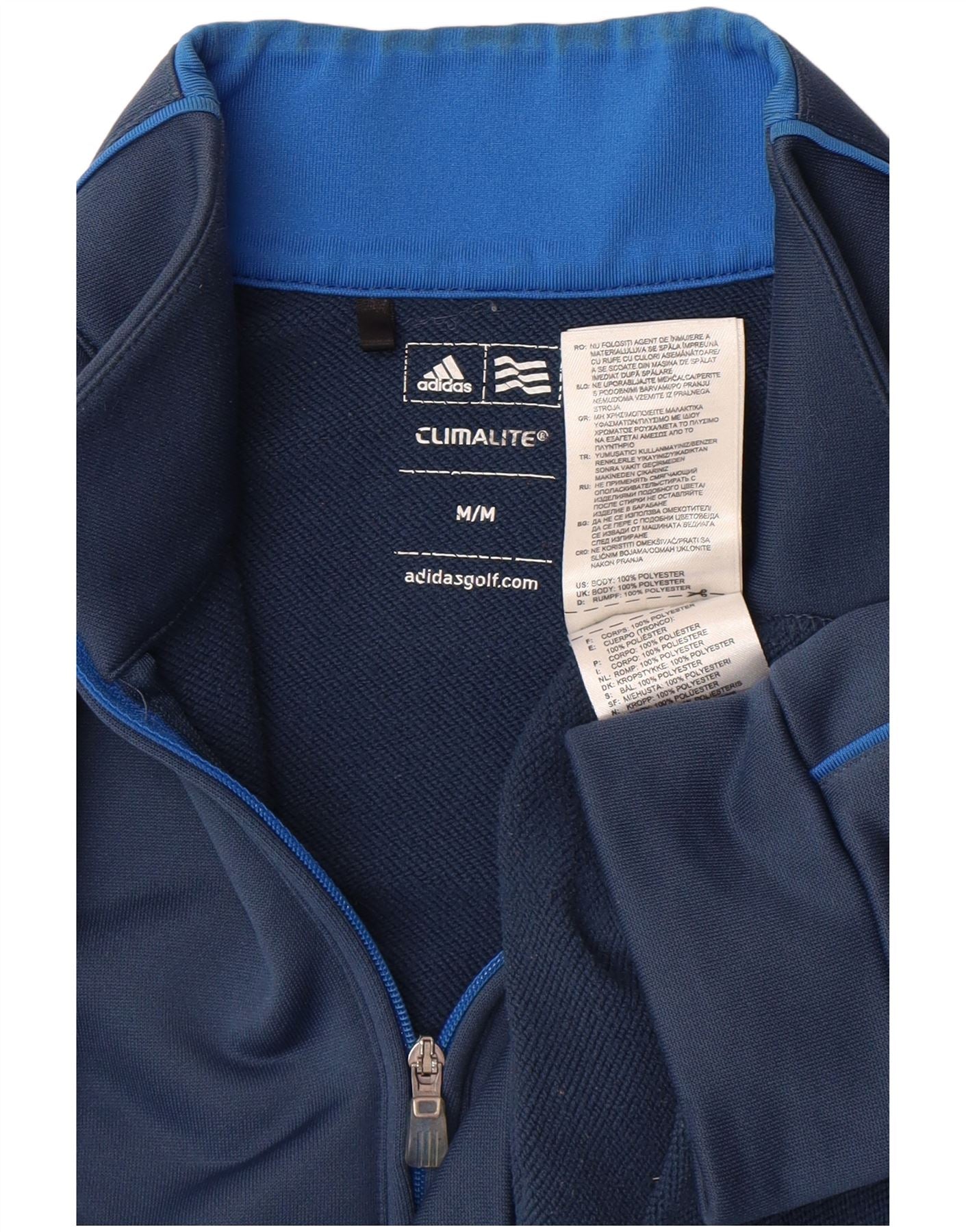 Adidas Uomo Climalite Zip Neck Pullover Tuta Top Blu Medio Poliestere