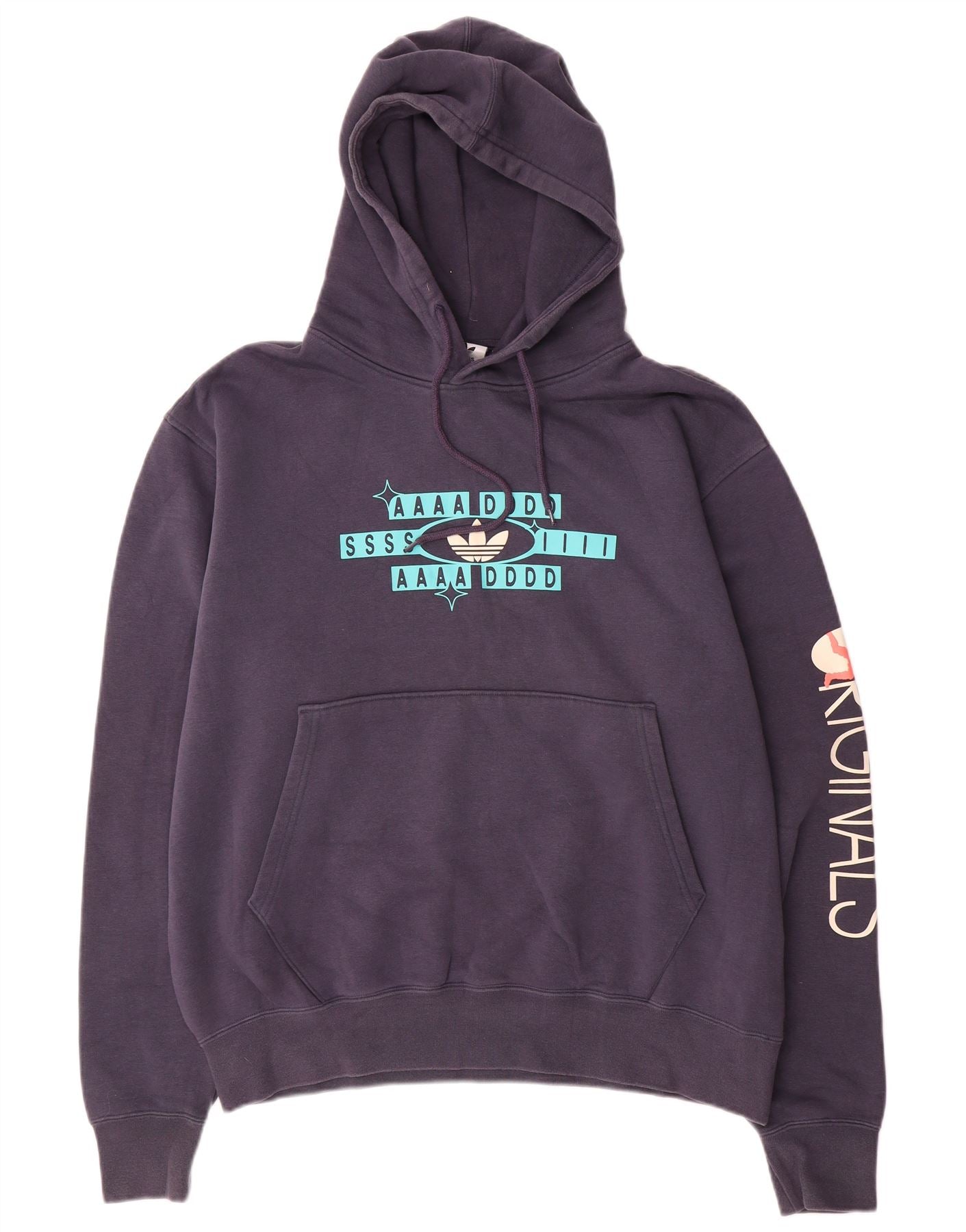 Maglione con cappuccio grafico da uomo ADIDAS grande in cotone blu navy
