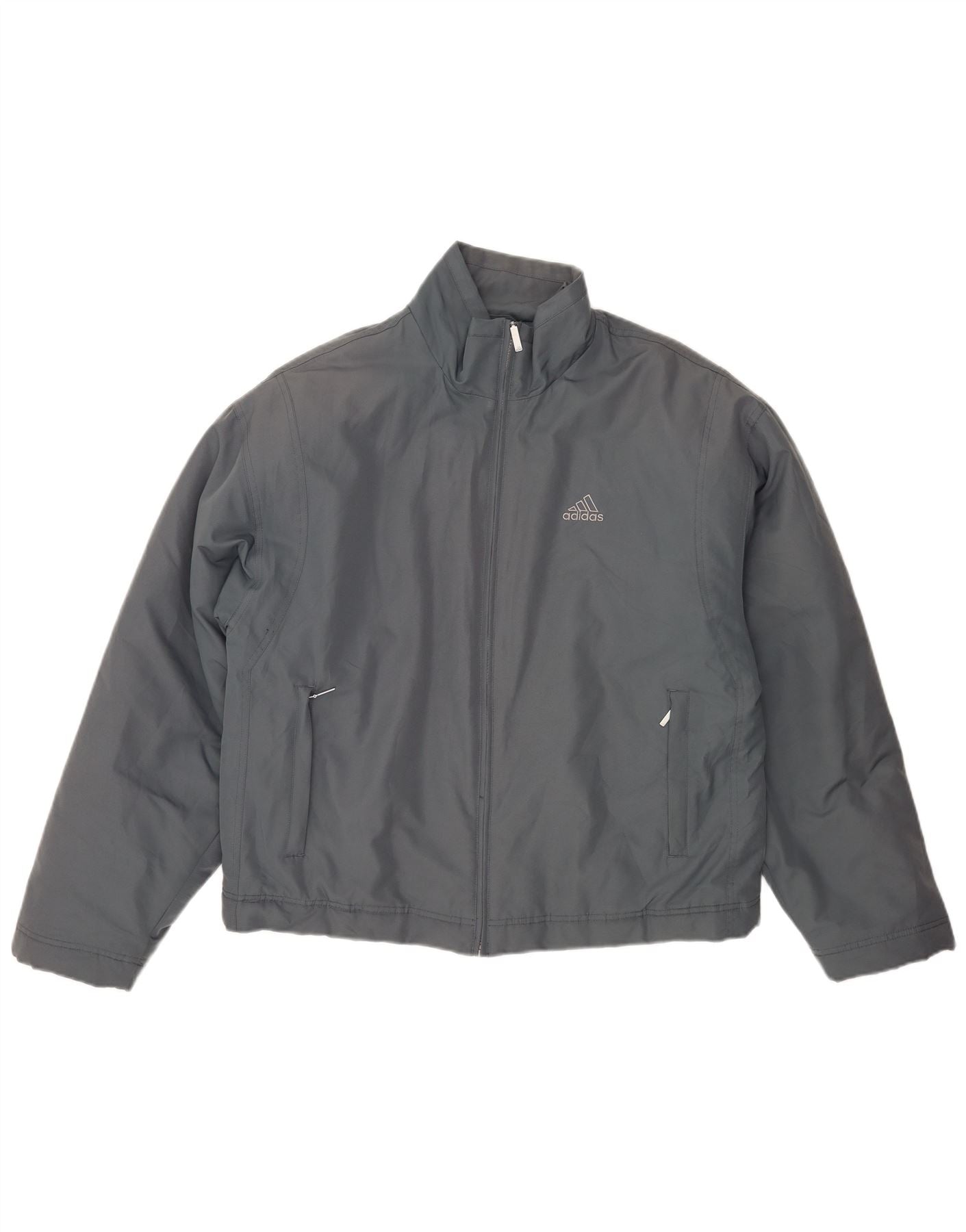 - Descrizione dell'IA: Questa giacca a vento da uomo Adidas è realizzata in poliestere intrecciato al 100%, offrendo una finitura liscia e imbottita in un grigio versatile. Presenta uno scollo con colletto e maniche lunghe. La chiusura full zip garantisce praticità. Una vestibilità regolare offre un'usura confortevole. Le sottili tasche frontali aggiungono funzionalità. Il logo Adidas è presente sul petto e sulla schiena, fornendo il marchio esclusivo.