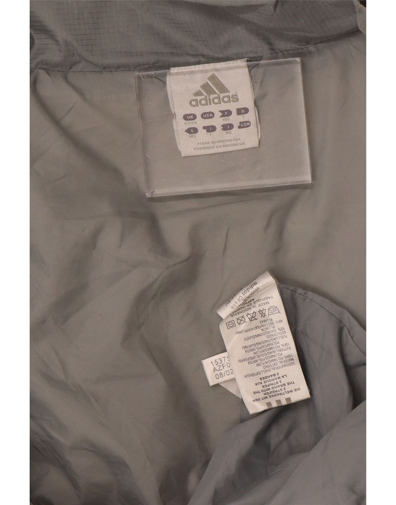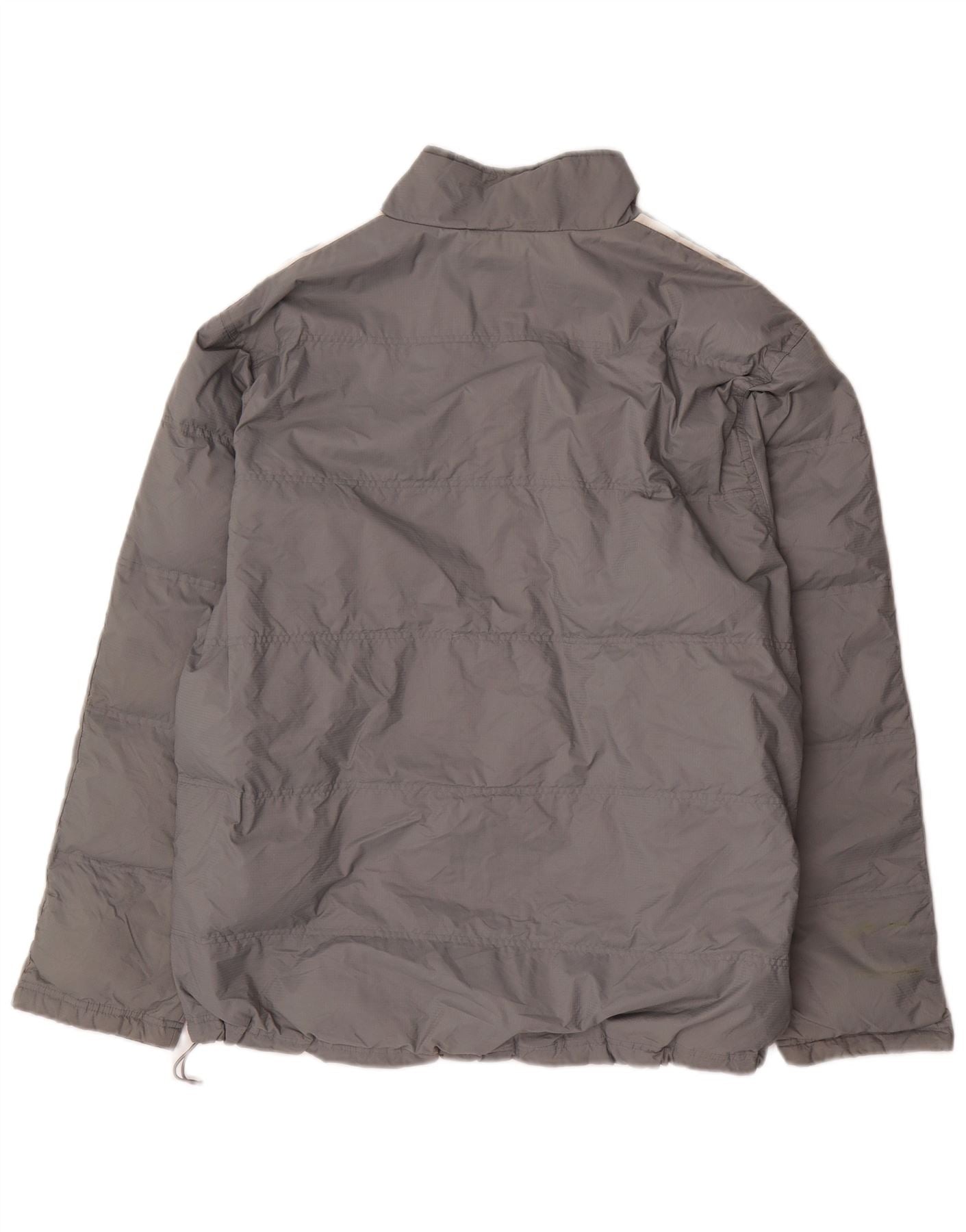 - AI Description: This Adidas mens padded jacket is crafted from durable polyamide, offering a smooth, woven texture. Its grey finish provides a versatile look. The collared neckline and long sleeves ensure classic coverage. A button-up front secures the regular fit, which is both comfortable and practical. This windproof jacket features convenient pockets and a subtle logo accent, perfect for sports or casual wear.