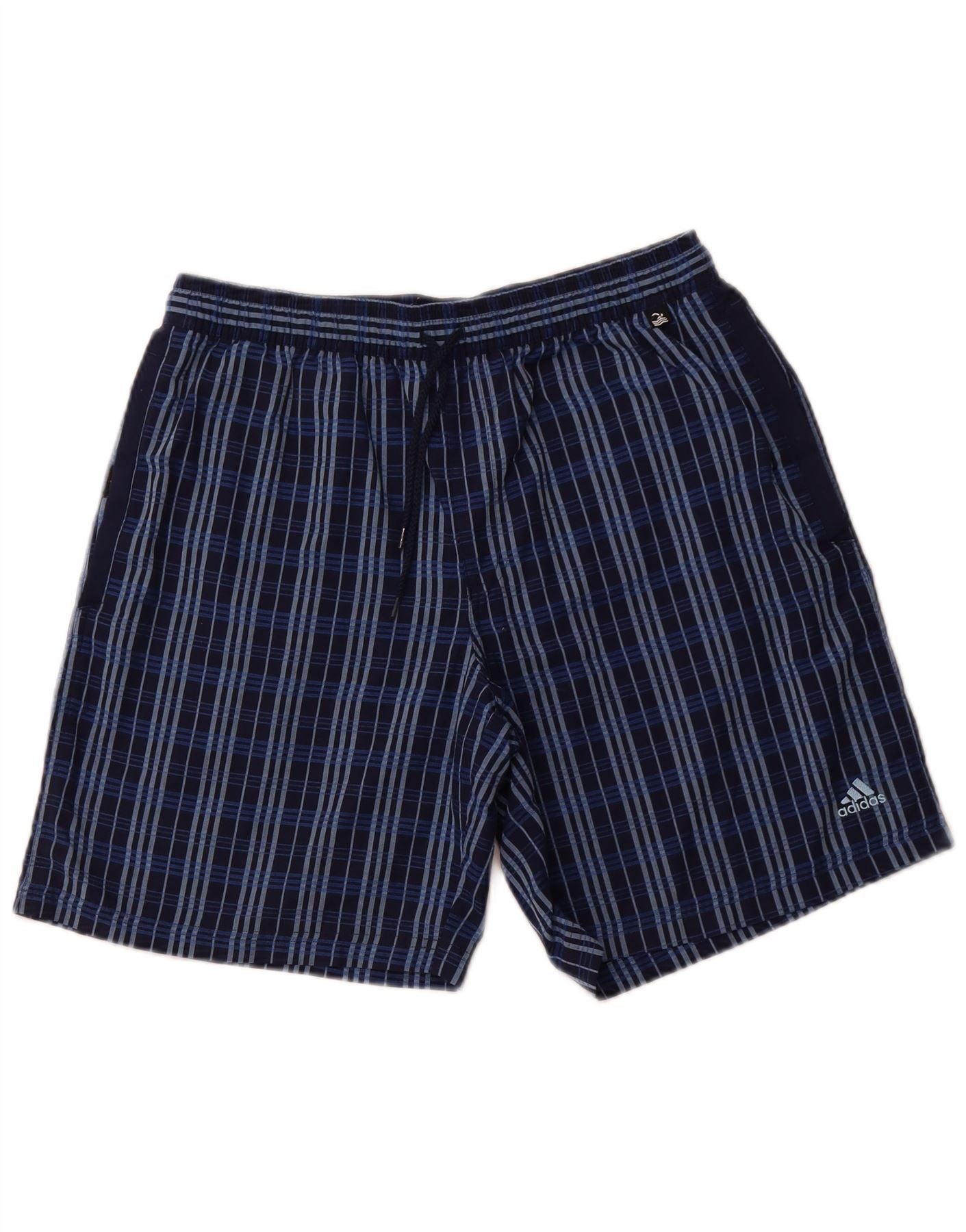 Pantaloncini da bagno da uomo Adidas medi in poliestere a quadri blu navy