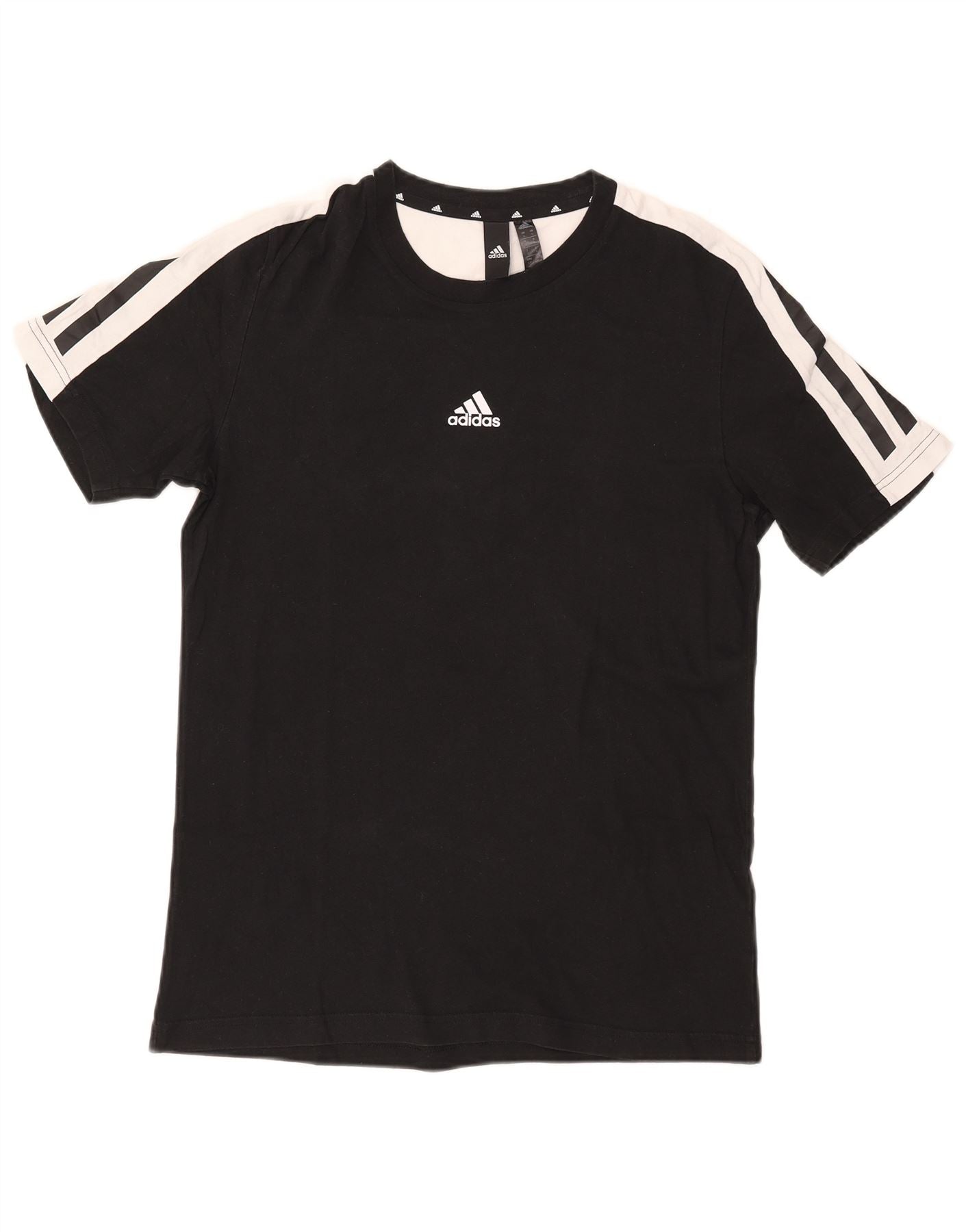 - Descrizione dell'IA: Questa maglietta grafica da uomo Adidas è realizzata in morbido jersey di cotone nero. Presenta un classico girocollo e maniche corte per il massimo comfort. Strisce bianche adornano le spalle e le maniche, aggiungendo un motivo distintivo. La vestibilità regolare garantisce facilità di movimento. Un sottile logo Adidas sul petto completa questo top sportivo traspirante e versatile.