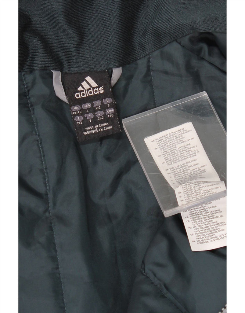 - AI Description: This Adidas mens padded jacket is crafted from durable grey polyester, offering a windproof finish. It features a high neck and a full zip closure for secure warmth. Long sleeves and a regular fit ensure comfortable movement. The design includes practical pockets and a protective hood. A subtle logo accent completes this sporty, functional piece.