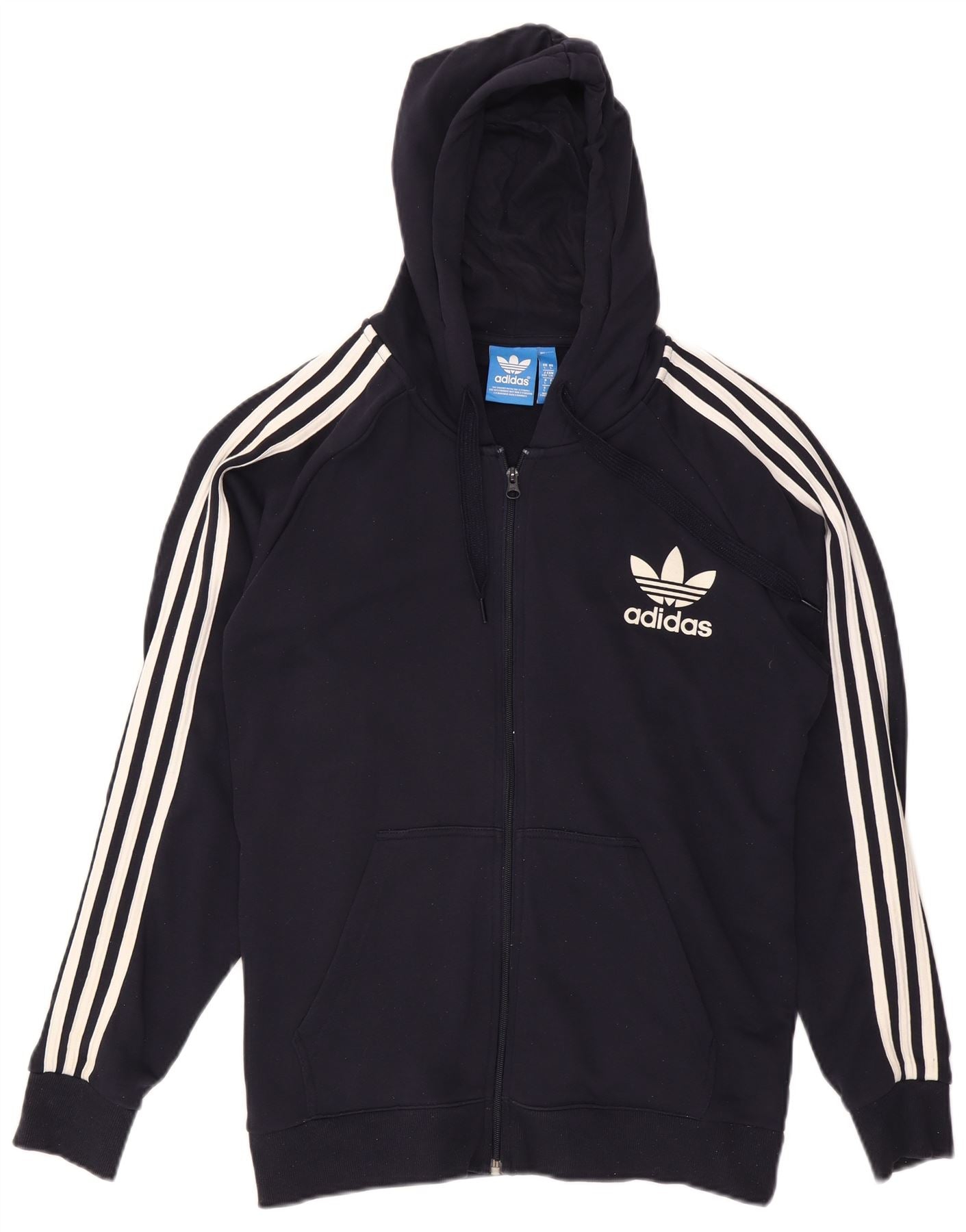 Maglione con cappuccio e zip da uomo ADIDAS grande in cotone blu navy