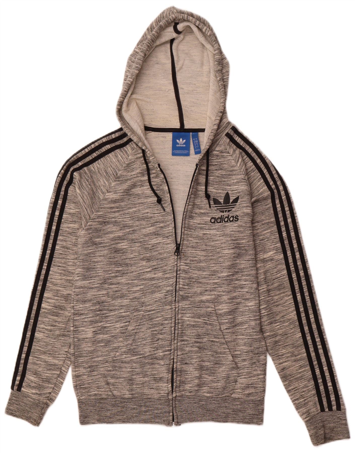 Maglione con cappuccio e zip da uomo ADIDAS piccolo in cotone chiazzato grigio