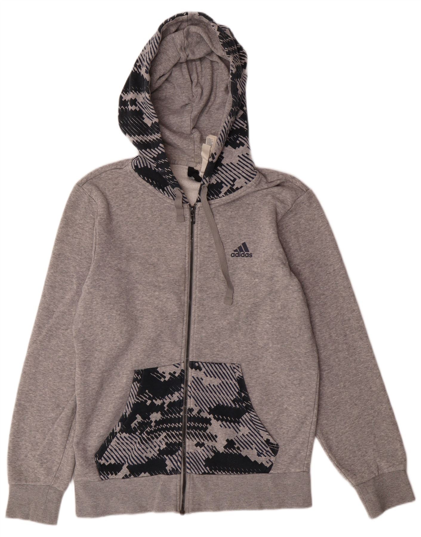 Maglione con cappuccio e zip da uomo ADIDAS piccolo in cotone geometrico grigio