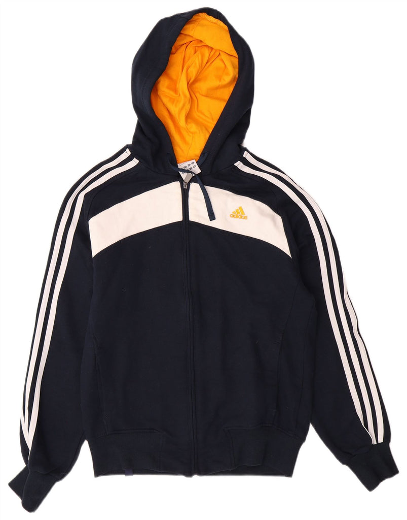 Maglione con cappuccio e zip da uomo ADIDAS UK 34/36 piccolo cotone color block blu navy