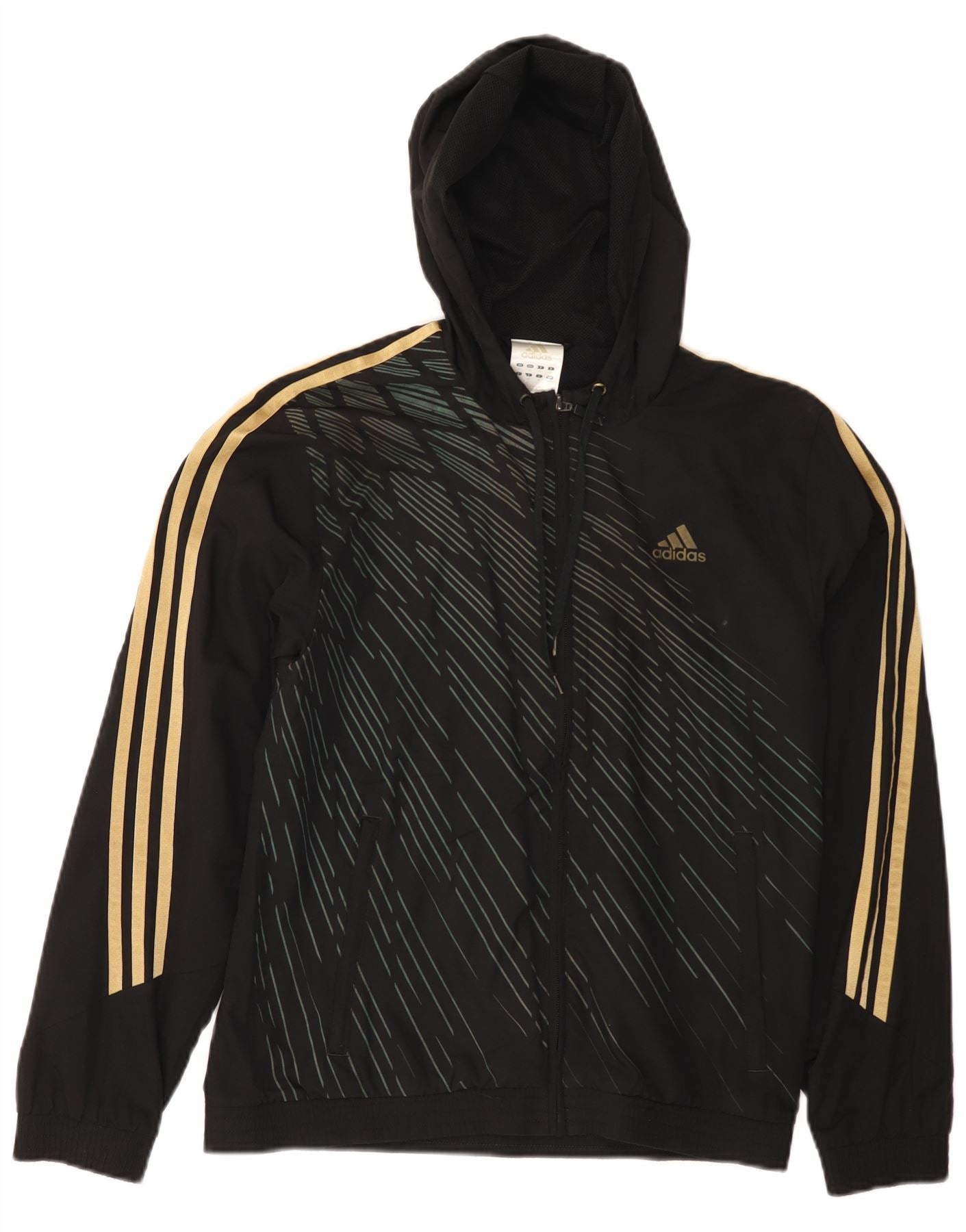 Maglione con cappuccio e zip da uomo ADIDAS XS poliestere a righe nere