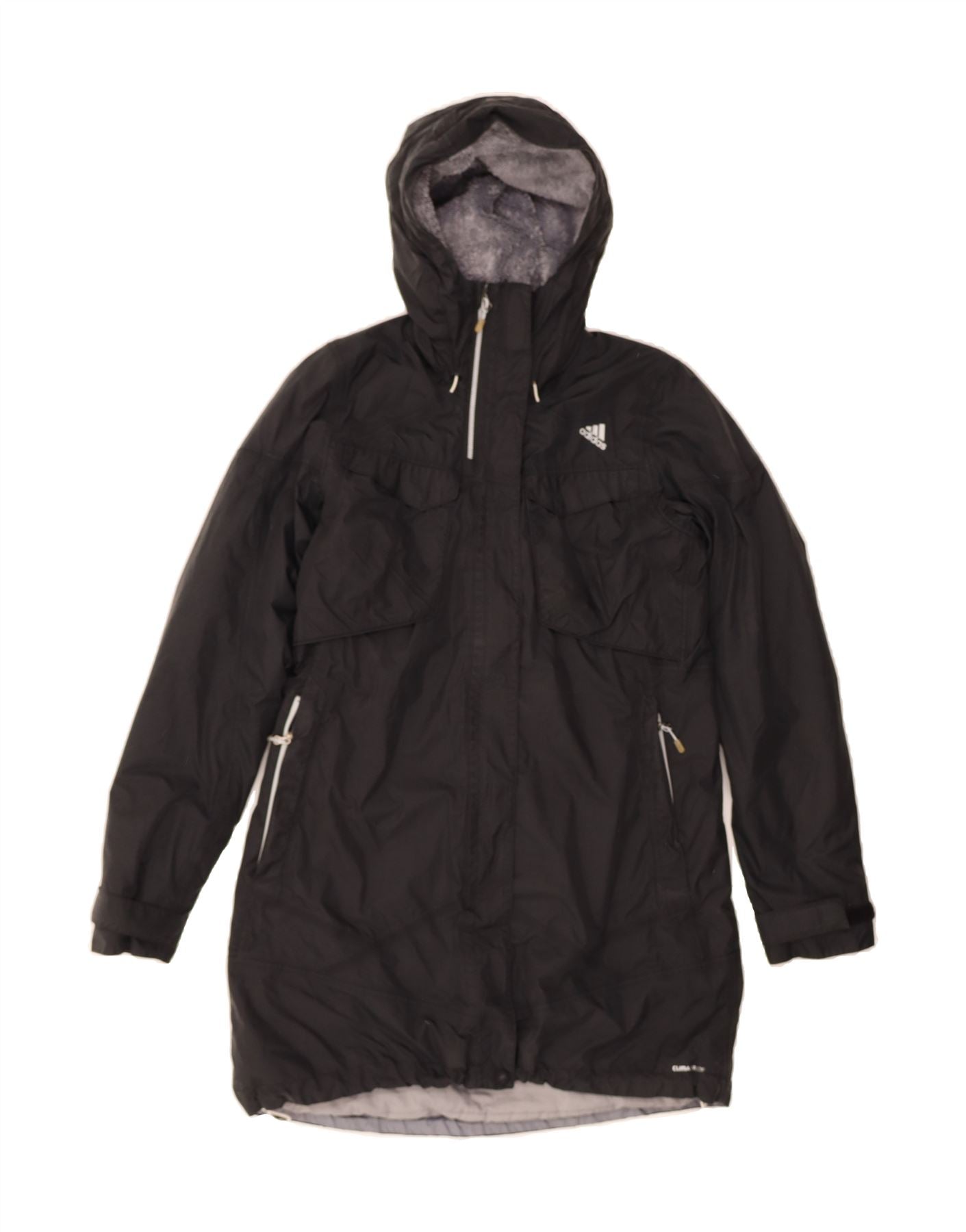 ADIDAS Womens Climalite Hooded Windbreaker Coat UK 12 Medium Black Nylon