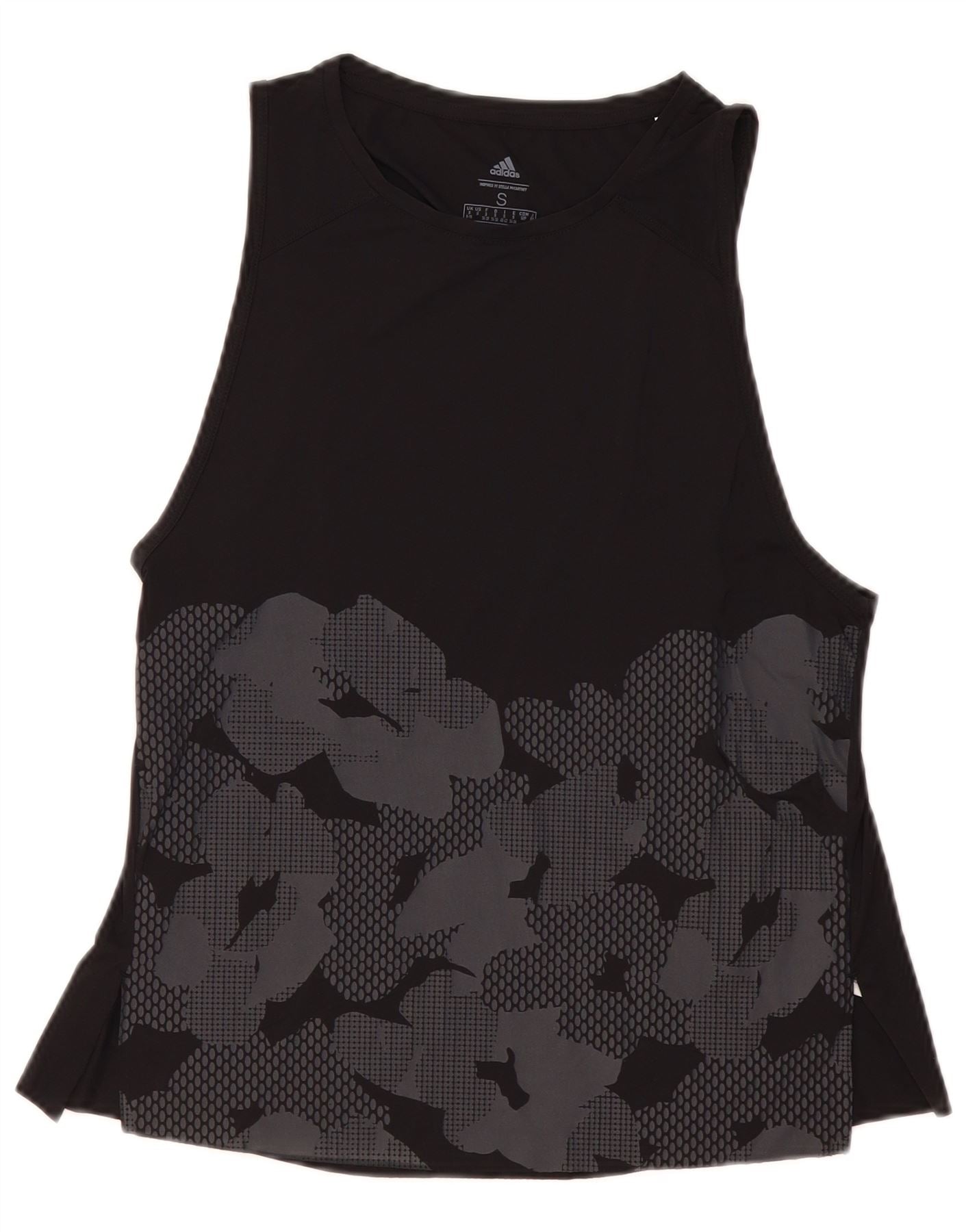 Canotta ADIDAS da donna Climalite UK 8/10 piccola in nylon mimetico nero