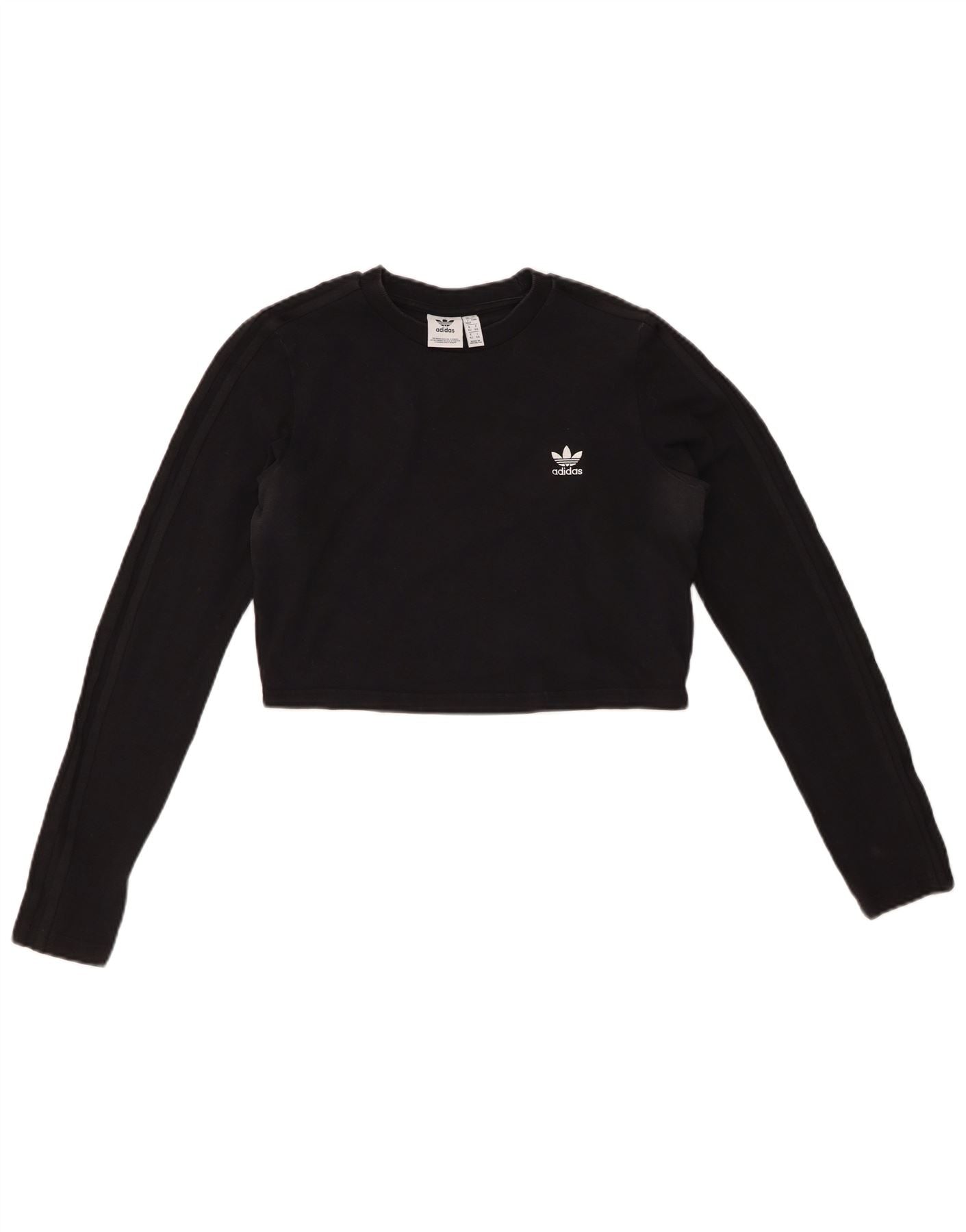 Top corto da donna ADIDAS manica lunga UK 16 grande cotone nero