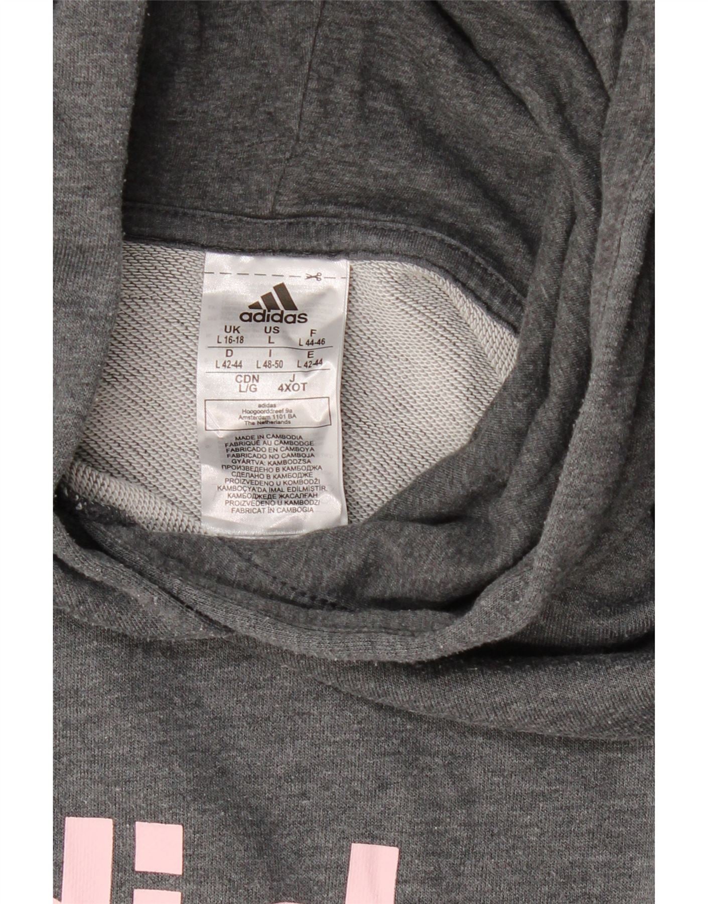 Maglione con cappuccio grafico da donna ADIDAS UK 16/18 Large Grigio Poliestere