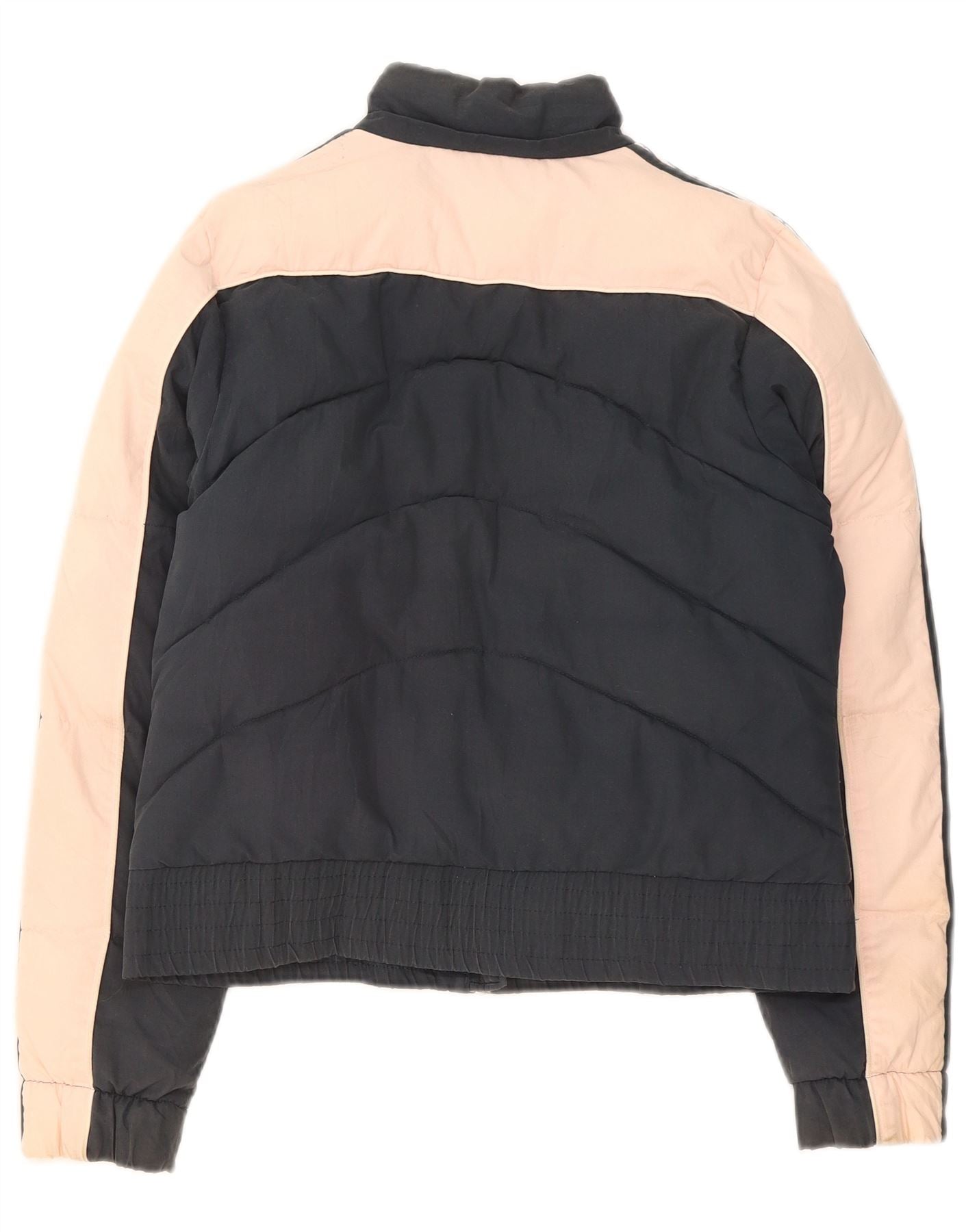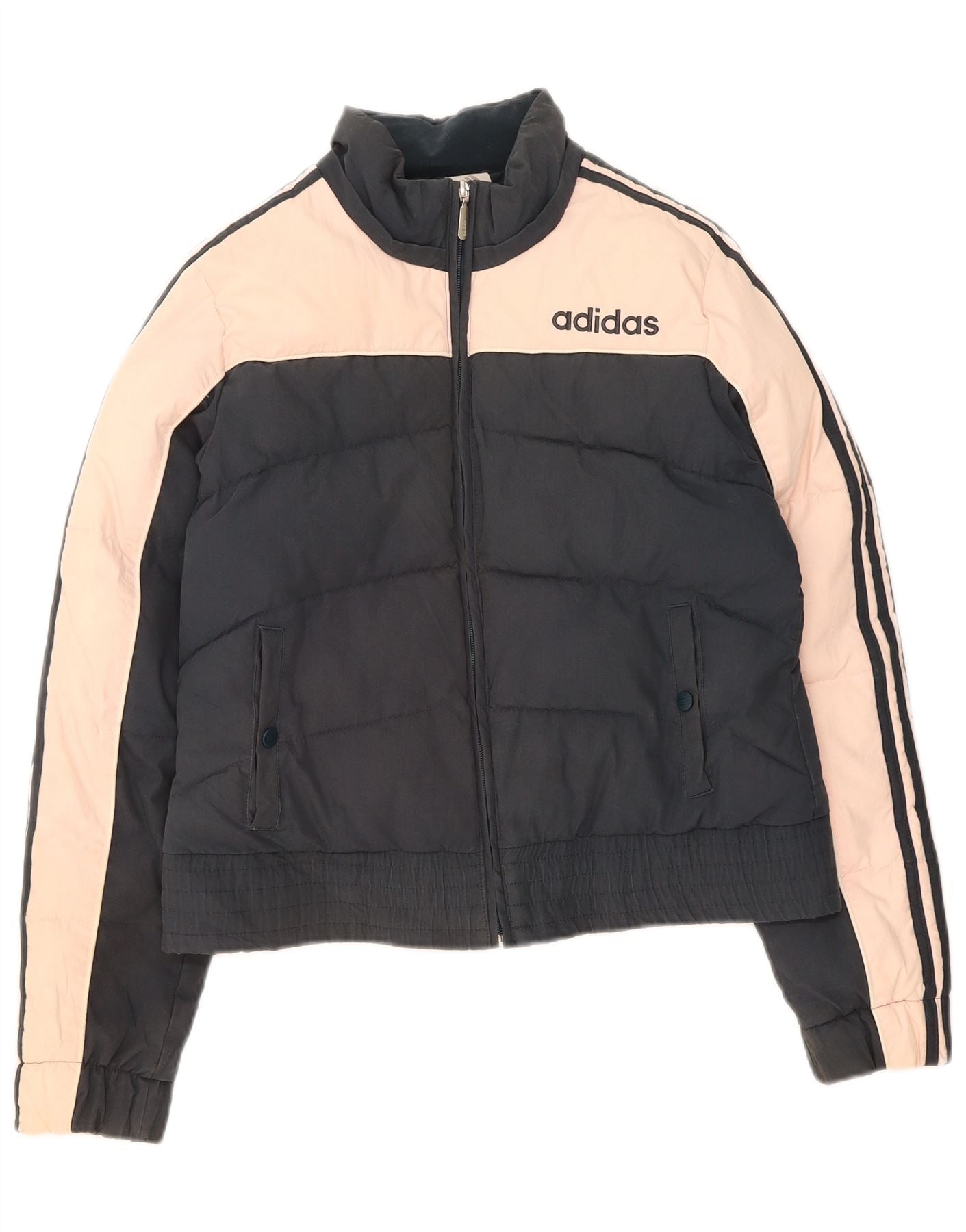ADIDAS Womens Graphic Padded Jacket UK 12 Medium Navy Blue Colourblock