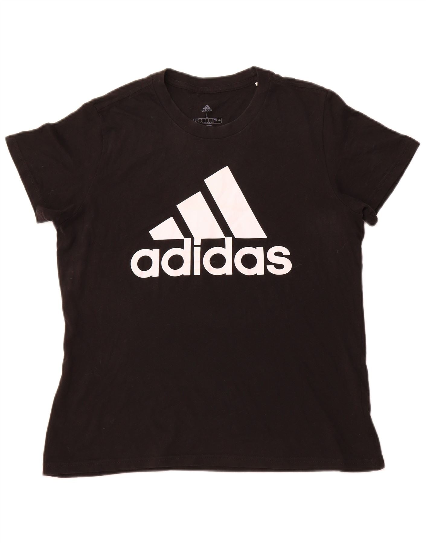 T-shirt grafica da donna ADIDAS Top UK 16/18 grande cotone nero