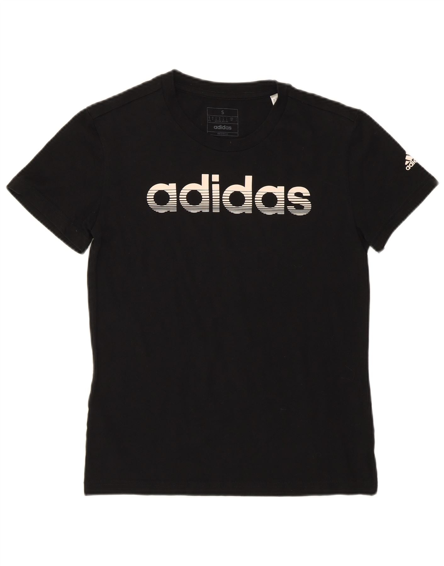 T-shirt grafica da donna ADIDAS Top UK 8/10 piccola in cotone nero