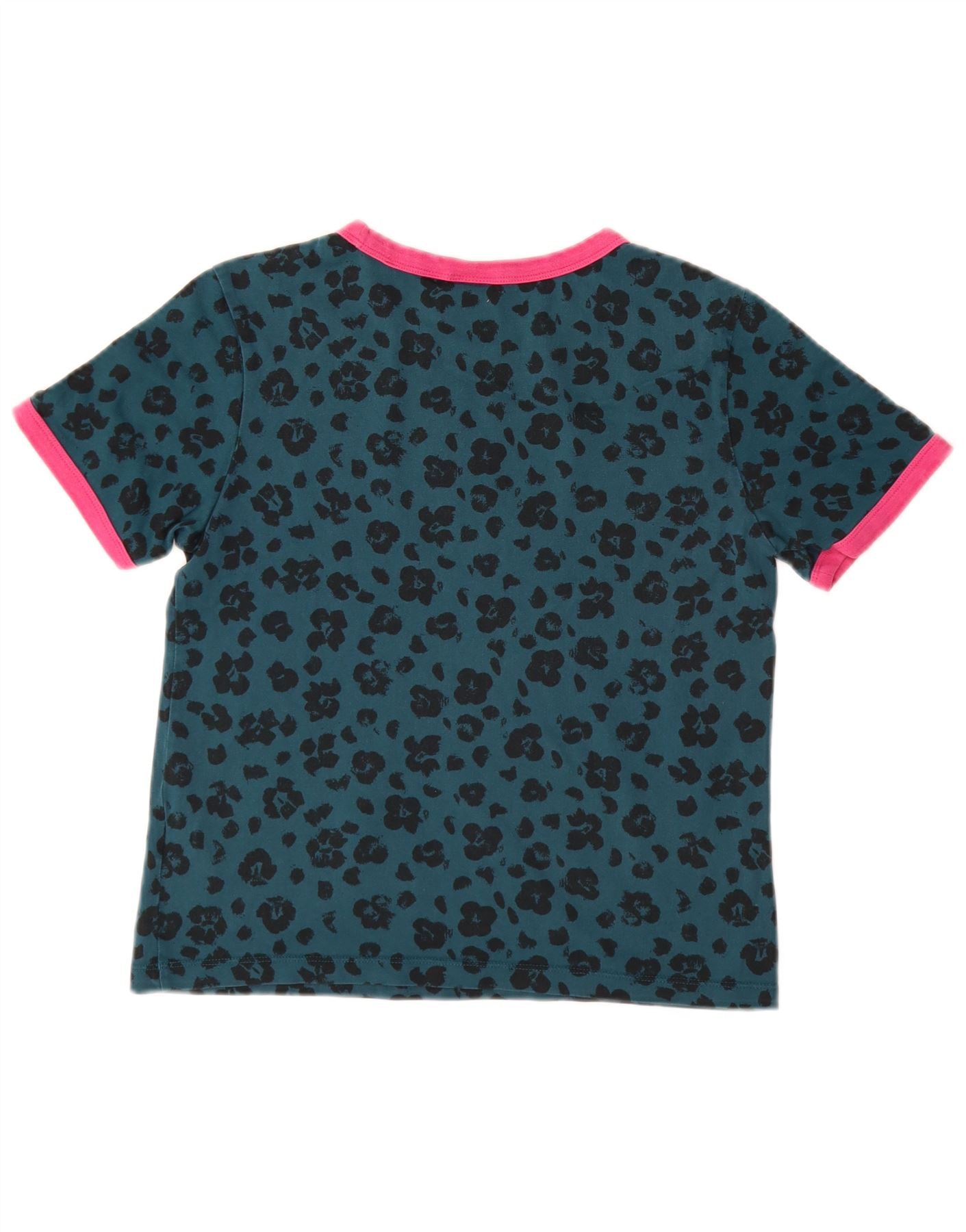 T-shirt grafica da donna ADIDAS Top UK 8 piccolo cotone verde con stampa animalier