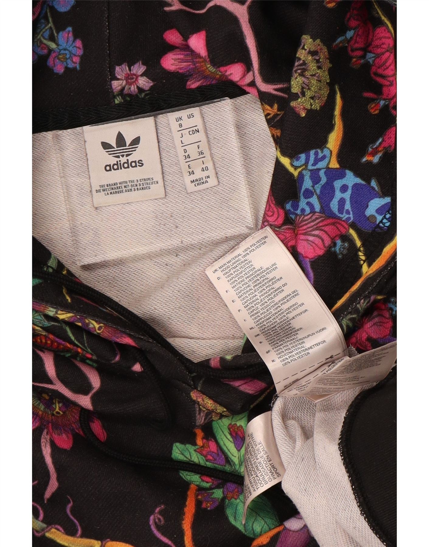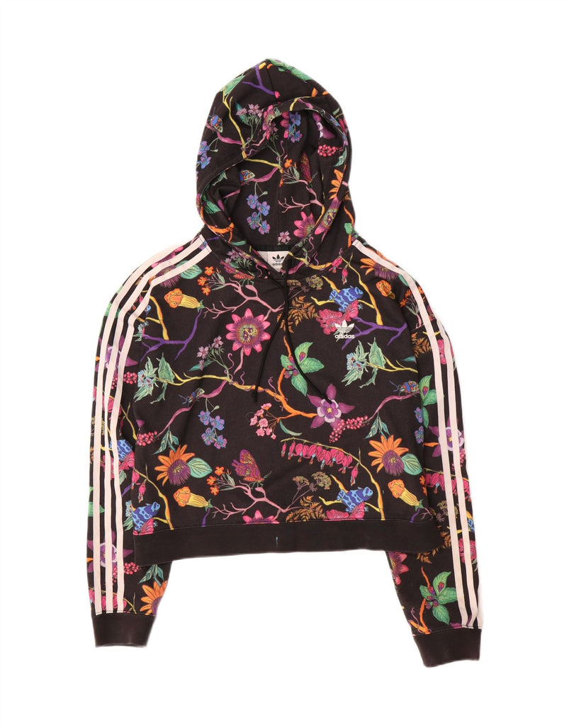 Maglione corto con cappuccio oversize da donna ADIDAS UK 8 piccolo nero floreale