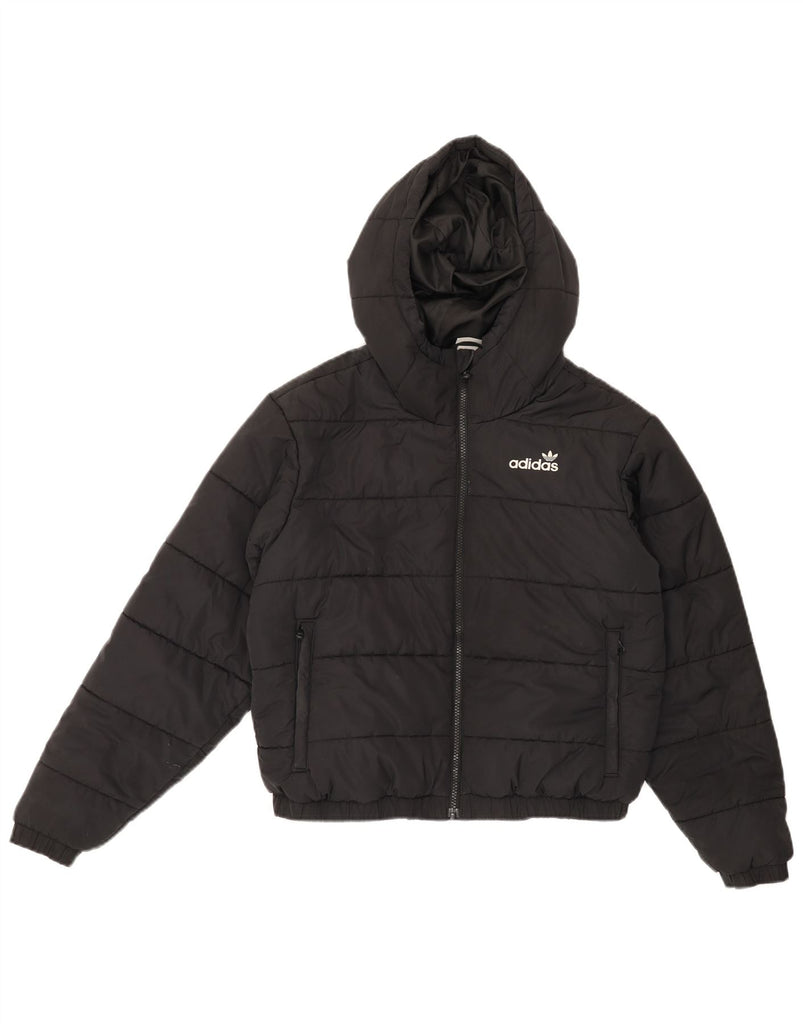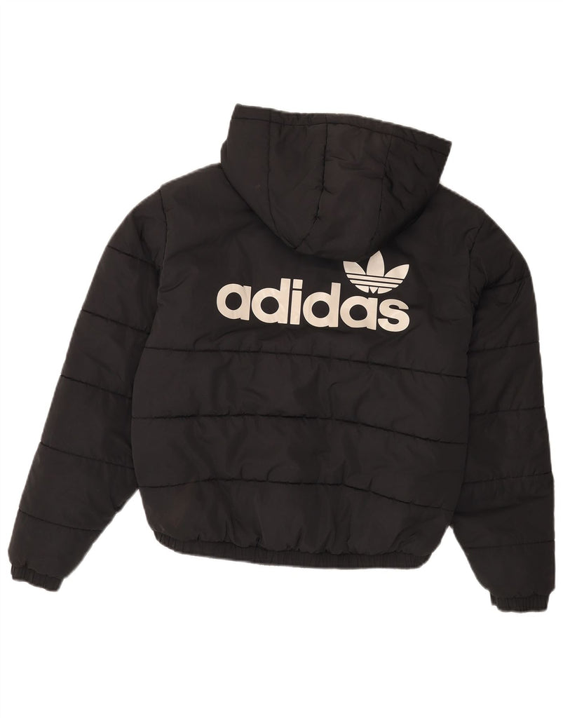 ADIDAS Womens Oversized Graphic Hooded Padded Jacket UK 8 Small Black
