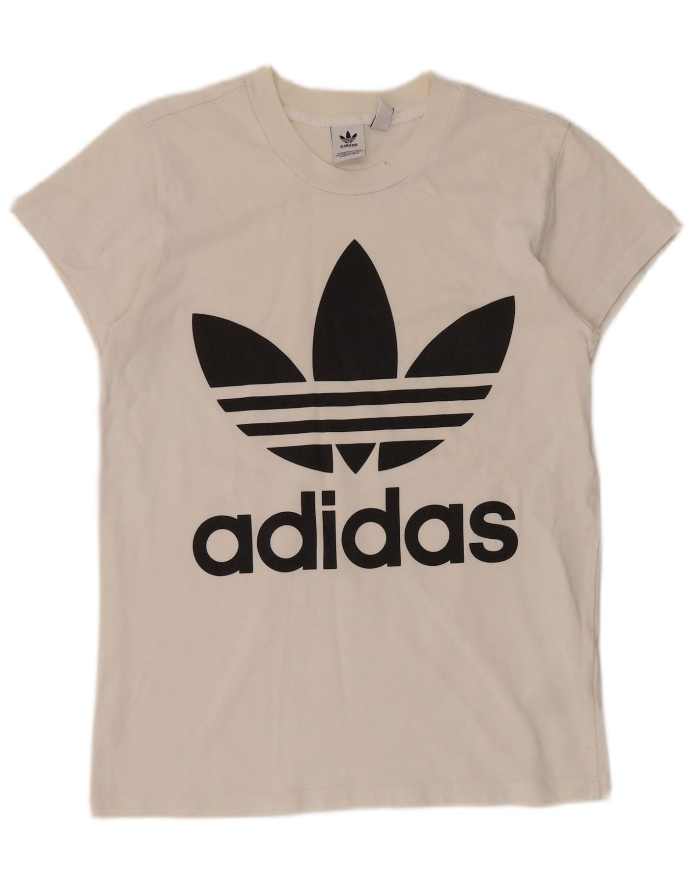 ADIDAS T-shirt grafica oversize da donna Top UK 2 2XS Cotone bianco