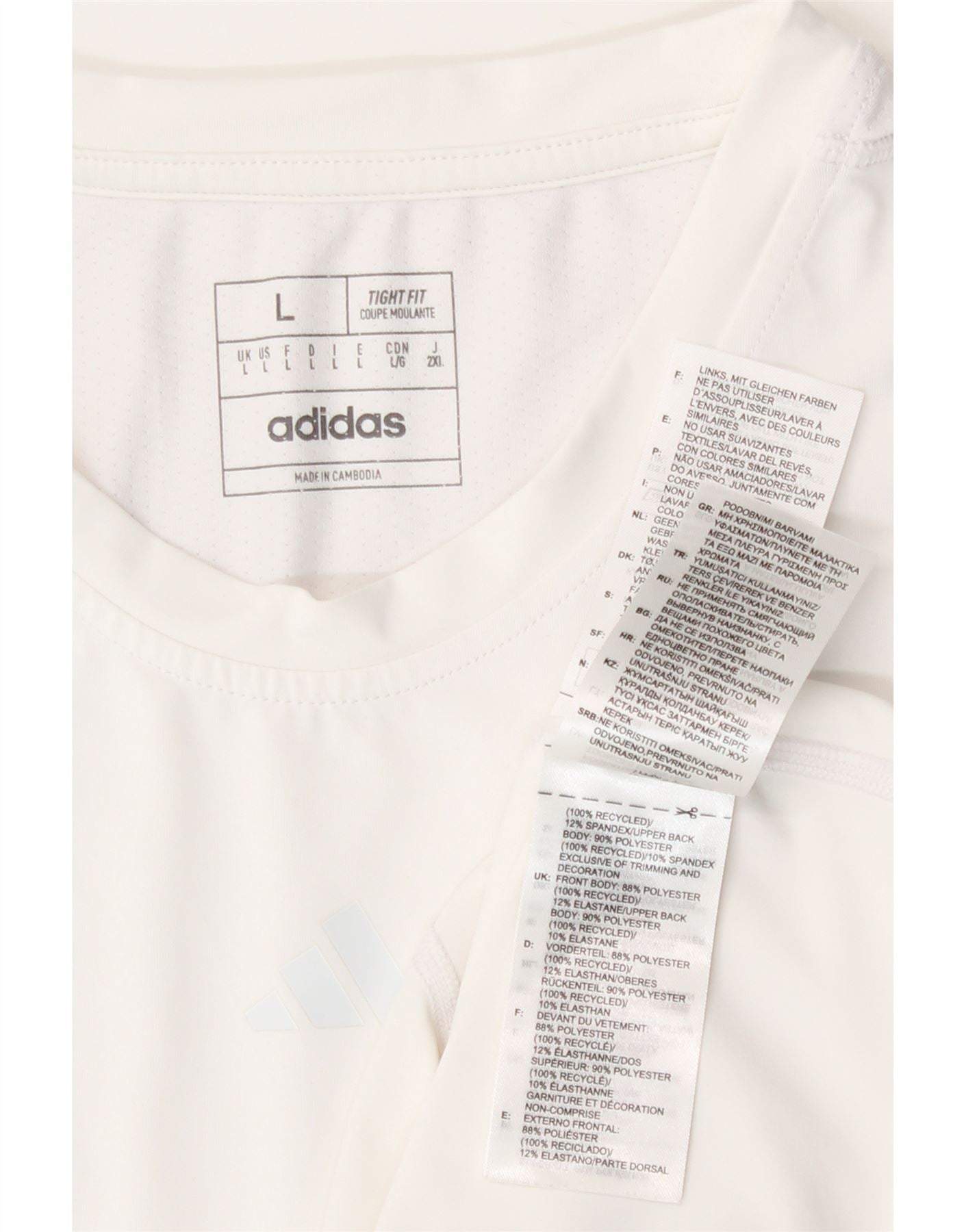 T-shirt aderente da donna Adidas UK 14 grande poliestere bianco