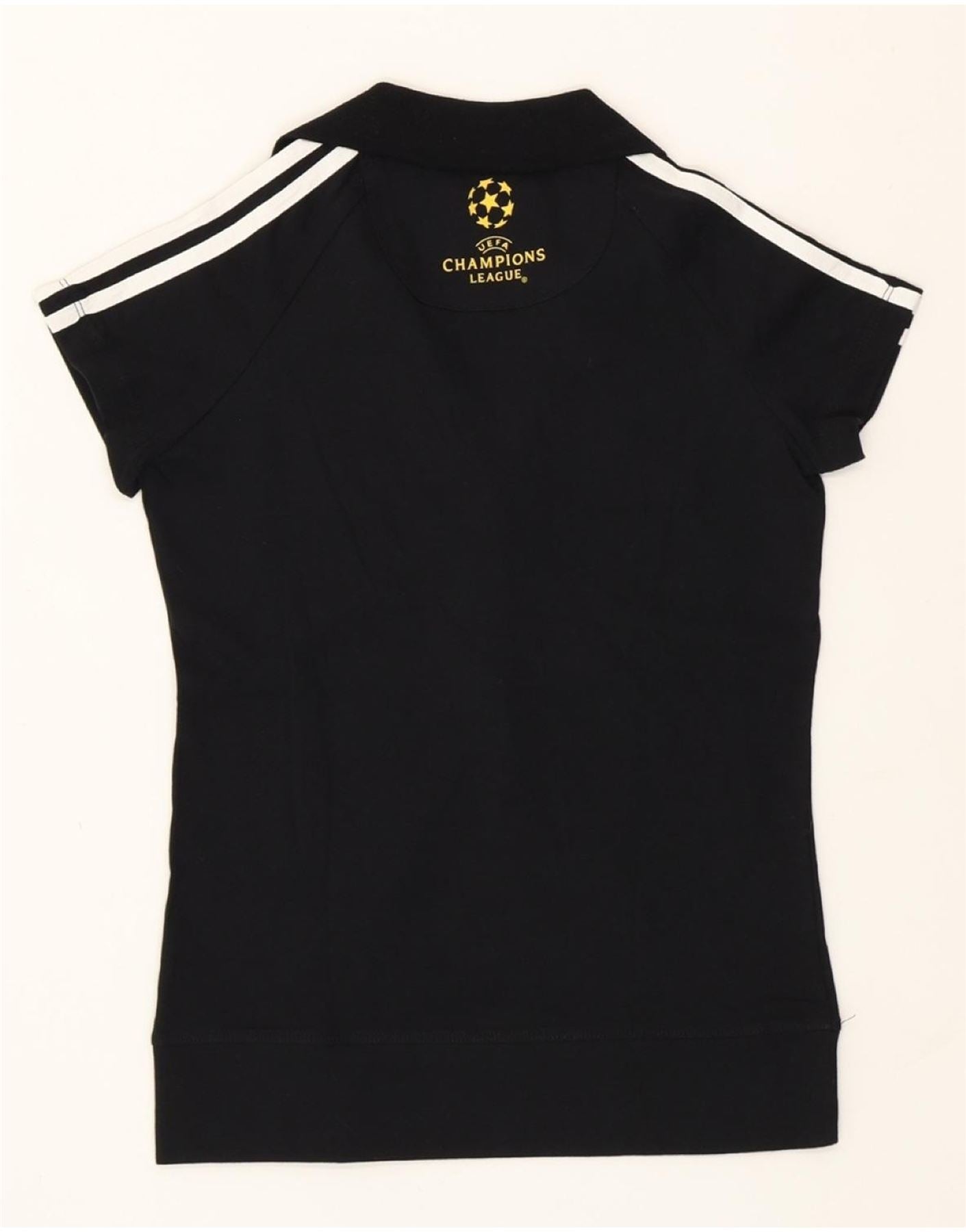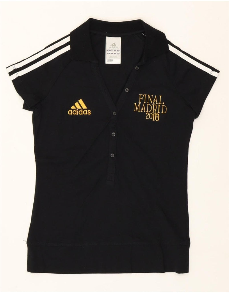 ADIDAS Womens UEFA Champions League Polo Shirt UK 8 Small Black Cotton