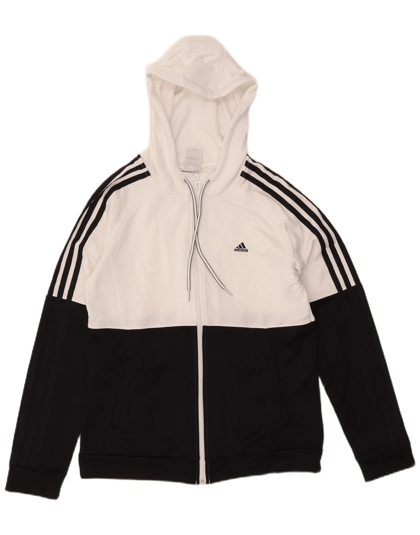 Felpa con cappuccio e zip da donna ADIDAS UK 12/14 Colorblock bianco medio