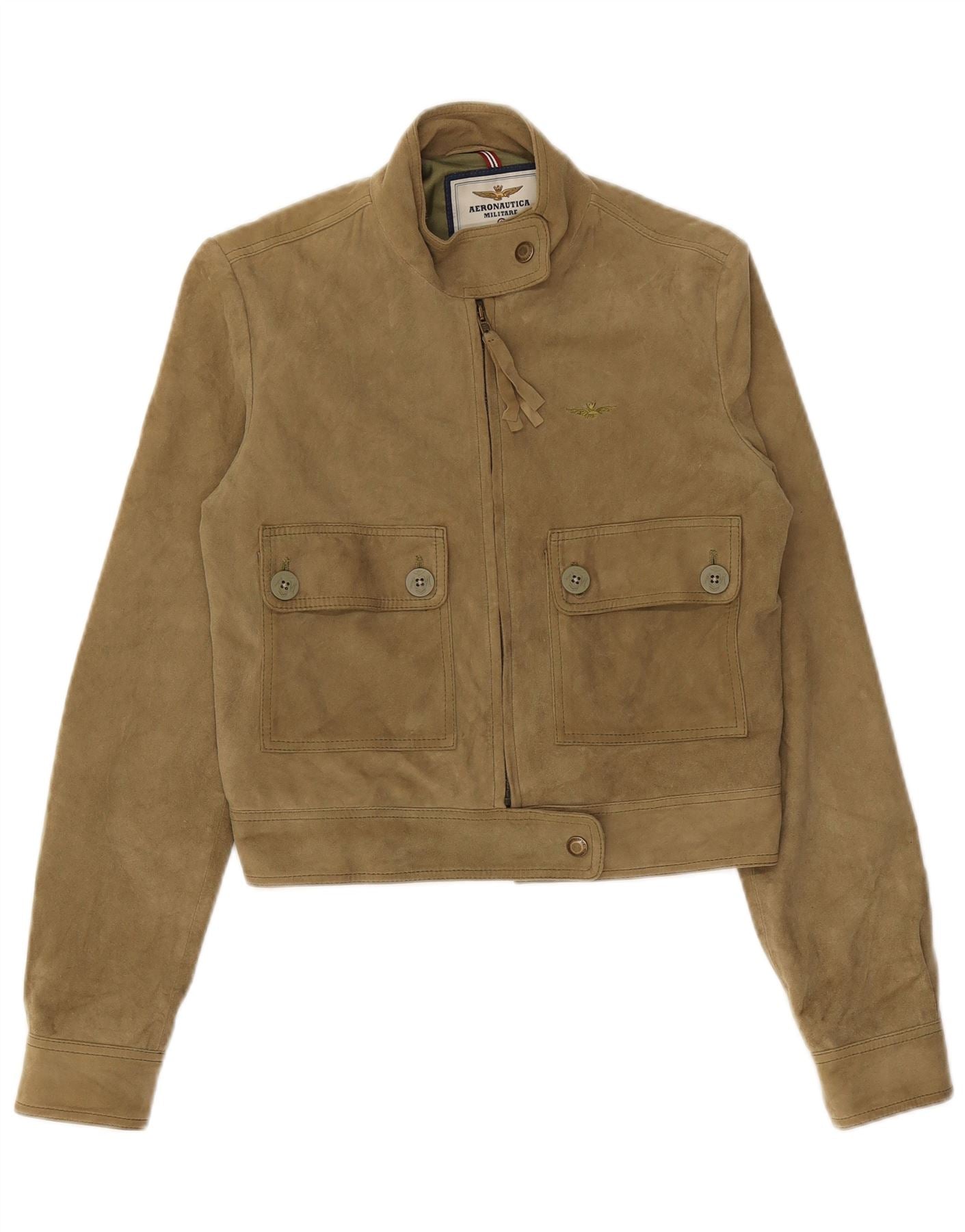 Giacca in pelle scamosciata corta da donna Aeronautica Militare IT 42 Medio in pelle kaki