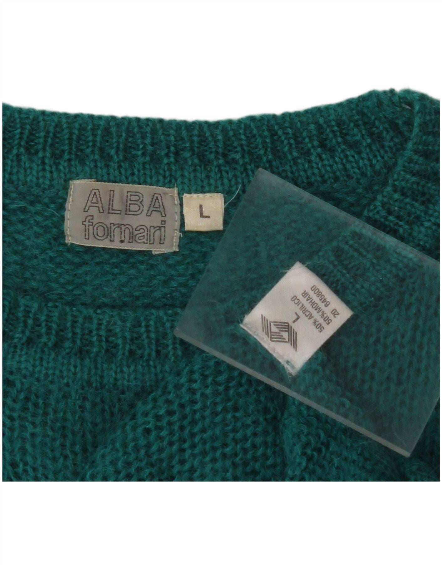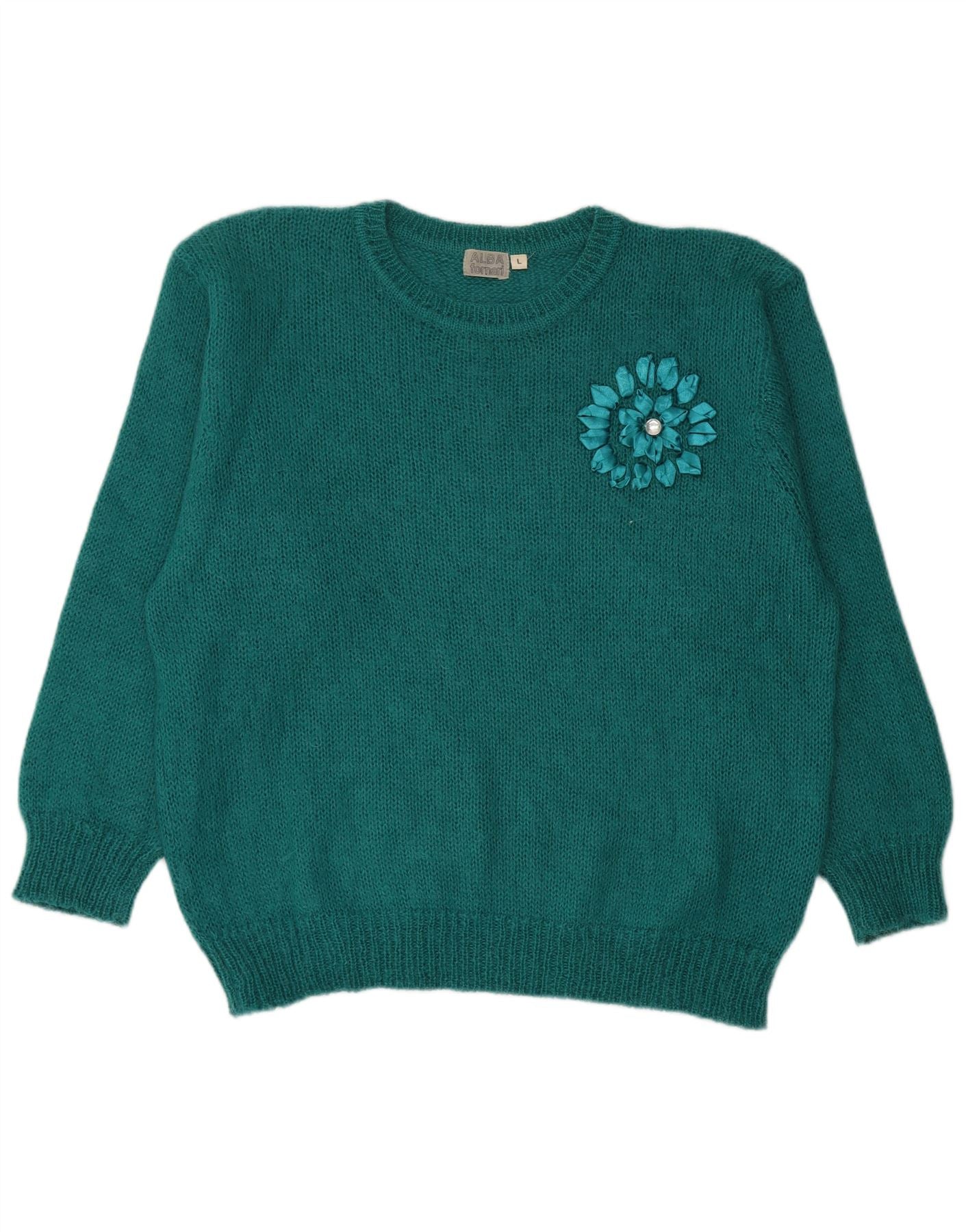 ALBA FORNARI Maglione maglione girocollo da donna UK 16 Grande verde floreale