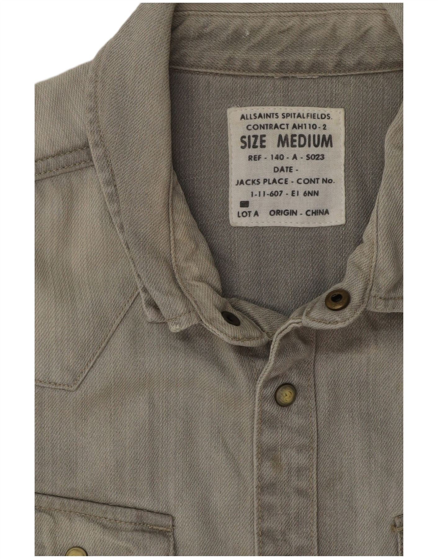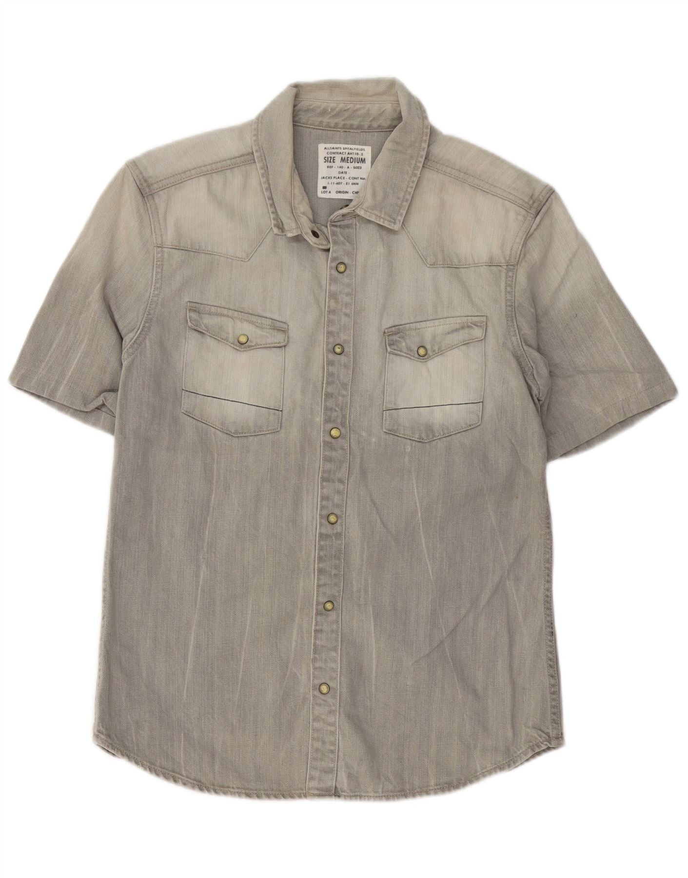 ALL SAINTS Camicia di jeans a maniche corte da uomo in cotone grigio medio